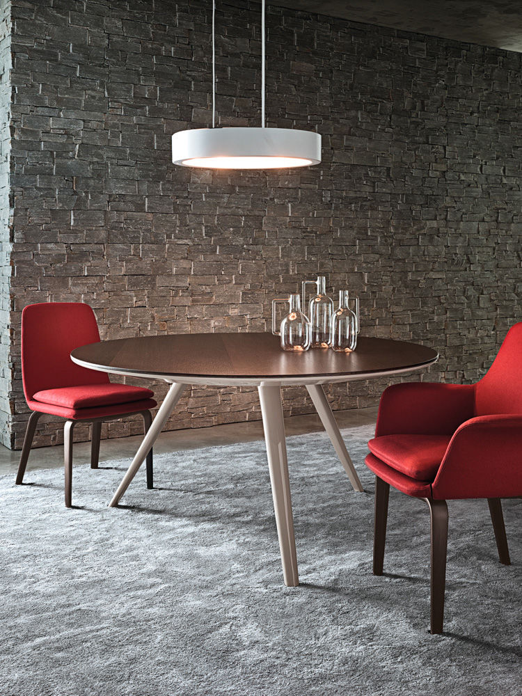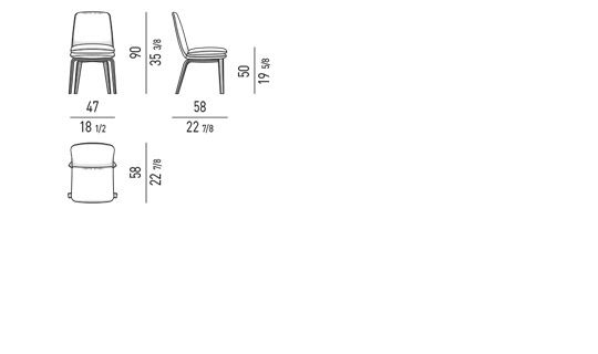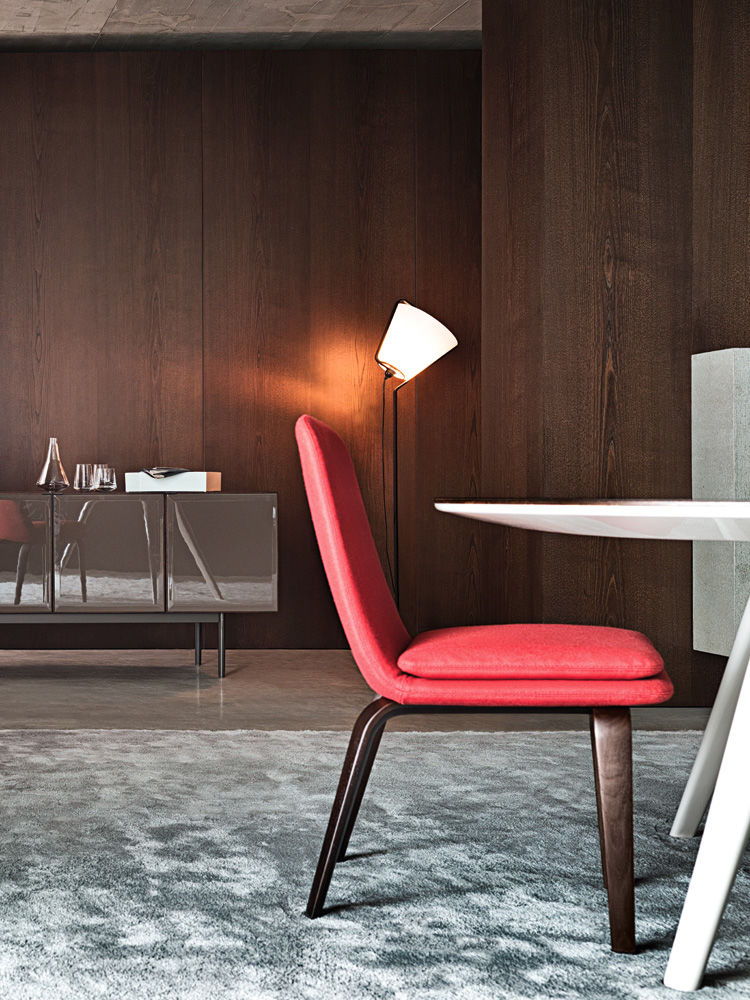De formas ligeras, pero dotadas de un suave relleno sobre los bastidores recubiertos con espuma en frío al que se ciñen perfectamente sus revestimientos de tejido o piel, funden de modo indisoluble ergonomía y elegancia generando asientos confortables y refinados.