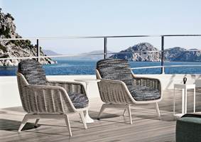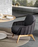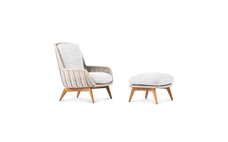 La gamme Belt Cord Outdoor comprend un canapé deux places, une bergère, un fauteuil, un repose-pieds, un fauteuil lounge et un petit fauteuil dining. Tous ces meubles sont également disponibles en version à pieds en teck finition naturelle. De style plus classique et d’aspect plus chaleureux, cette version peut facilement être assortie avec tous les autres produits de la collection outdoor.