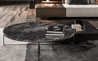 - MDF, épaisseur 20 mm, laqué brillant couleur Sand ; - MDF, épaisseur 20 mm, plaqué Sucupira teinté Vison ; - MDF, épaisseur 20 mm, (à l’exception de la petite table 120x120 H30 cm dont l’épaisseur est de 50 mm) plaqué ébène vernie polyester transparent brillant ; - marbre Bardiglio Nuvolato, épaisseur 20 mm ; - marbre Calacatta, épaisseur 20 mm.