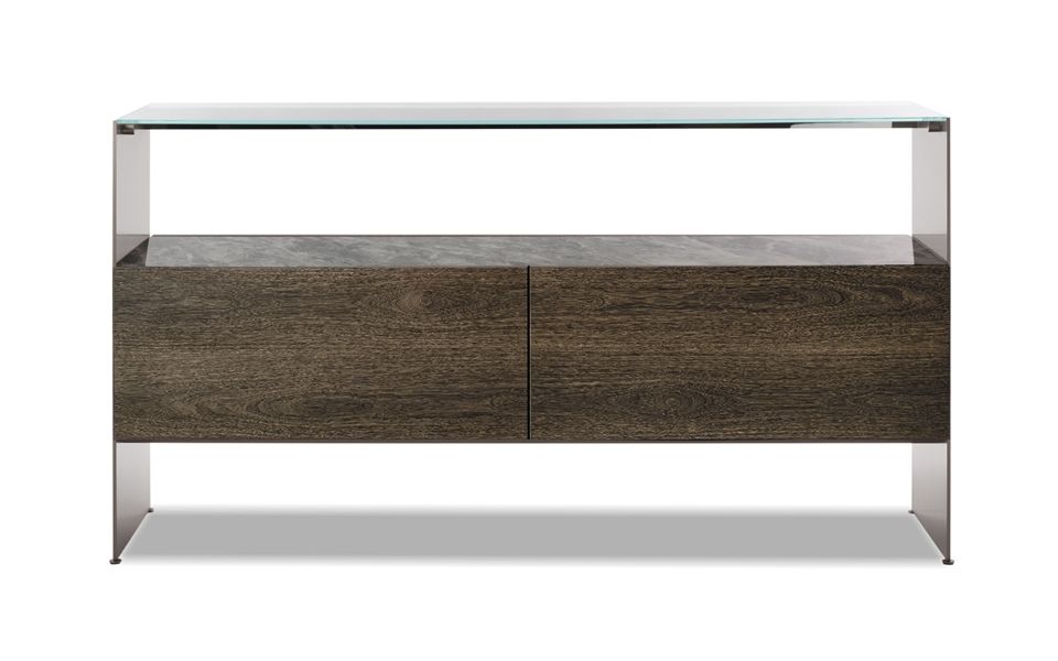 La collection de meubles Carson présente une esthétique essentielle et moderne, déclinée dans une combinaison de matériaux précieux.