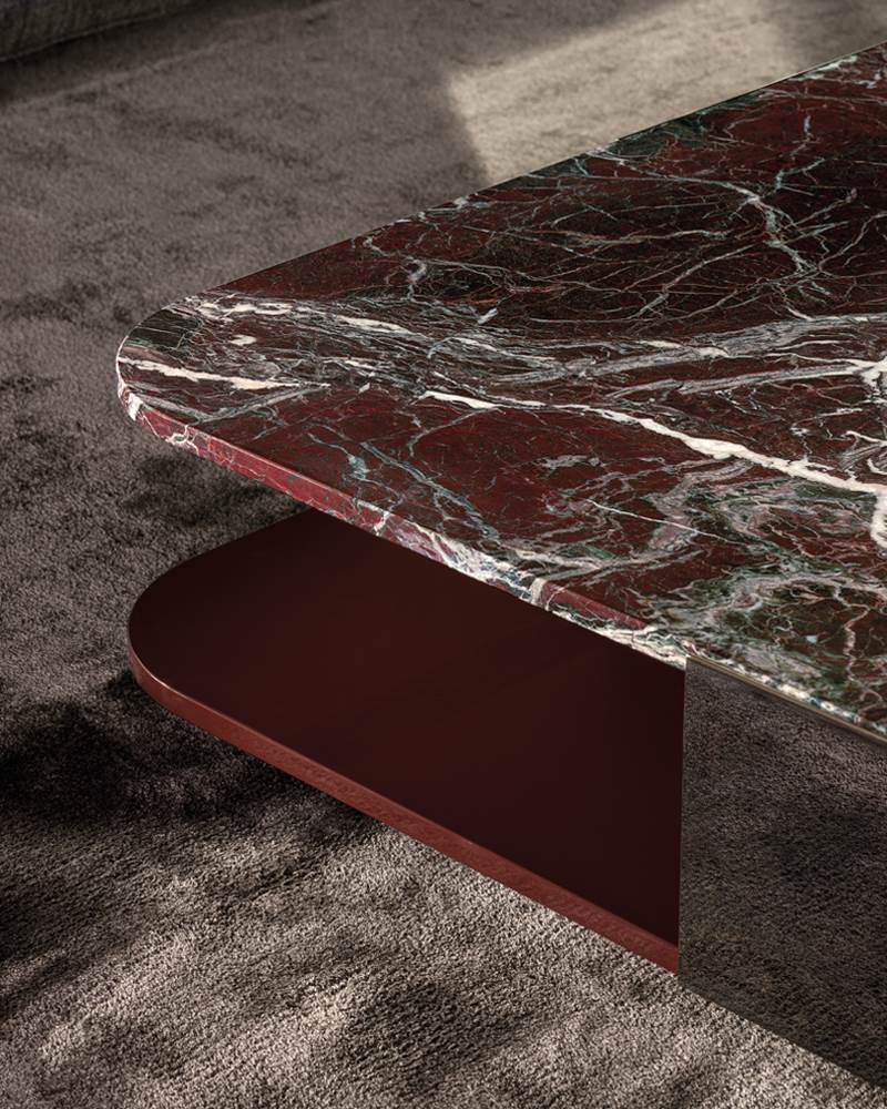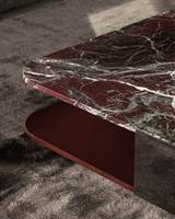 - plateau en marbre Rosso Levanto / tôle en acier inoxydable / plateau inférieur laquée couleur Châtaigne, en palissandre de Santos* ou palissandre de Santos* teinté Dark Brown ;