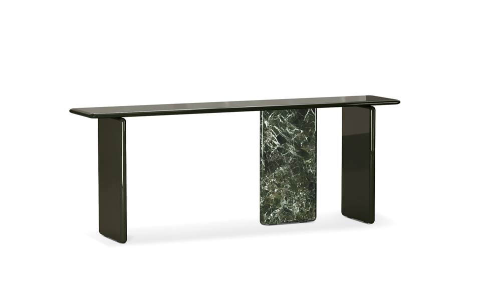 La famille de petites tables Drake s’étoffe d’une console. Disponible dans plusieurs tailles - en marbre, en bois ou en laqué brillant - et avec deux ou trois supports au sol, la console Drake se distingue par ses lignes épurées et essentielles.