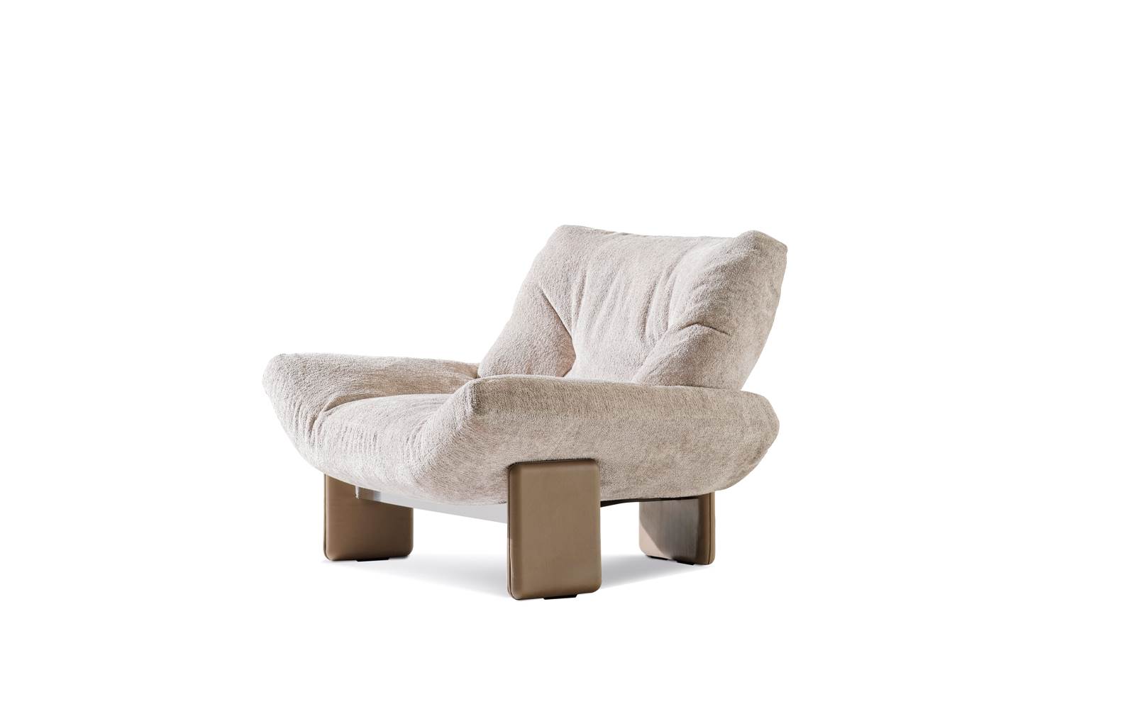 Un équilibre harmonieux qui crée un siège d'un confort inégalé, extrêmement enveloppant et conçu pour offrir des moments de détente, également avec son repose-pieds présentant les mêmes caractéristiques.