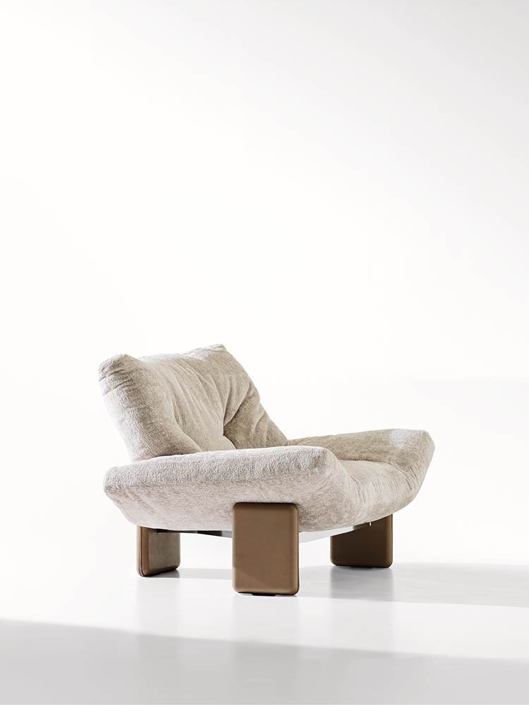 Expression d'un design riche en contenu d'auteur, Emmi rend hommage aux fauteuils généreux et moelleux des années 1970 et reflète également le savoir-faire manufacturier de Minotti.