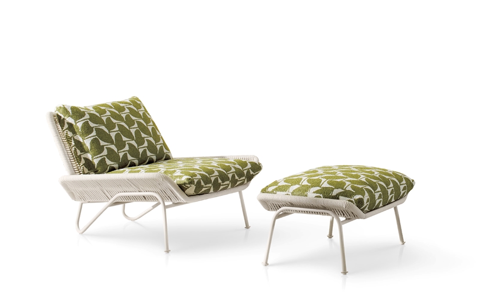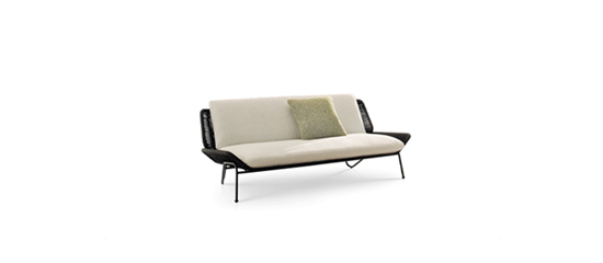 Pensée pour trouver sa place dans les contextes plein air les plus variés, la fine structure métallique en tubes revêtus de cordes tressées de même teinte accueille de moelleux coussins d’assise et de dossier. Caractérisée par une silhouette sinueuse très originale, sa base dessine l’assise et le dossier comme une ligne continue, ce qui confère à Emmi une