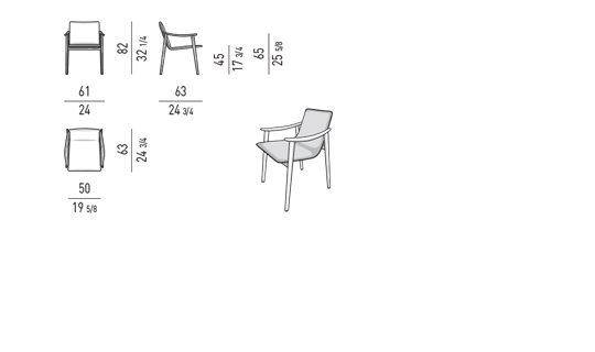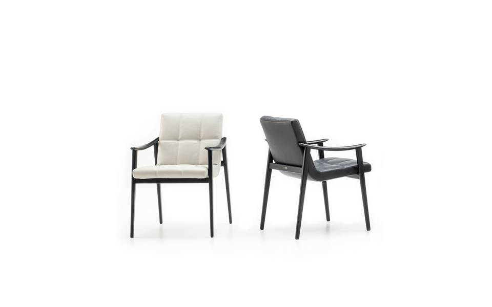 Le fauteuil et les petits fauteuils Fynn se distinguent par leur aspect très léger et leur structure essentielle en bois de frêne couleur Réglisse qui accueille le coussin rembourré de l’assise et dossier et qui constitue un seul et même élément. La rigueur informelle avec laquelle Fynn fait sien le rembourrage donne naissance à un siège confortable qui berce presque le corps de la personne qui s’assoit dans le chaleureux bois de la structure.