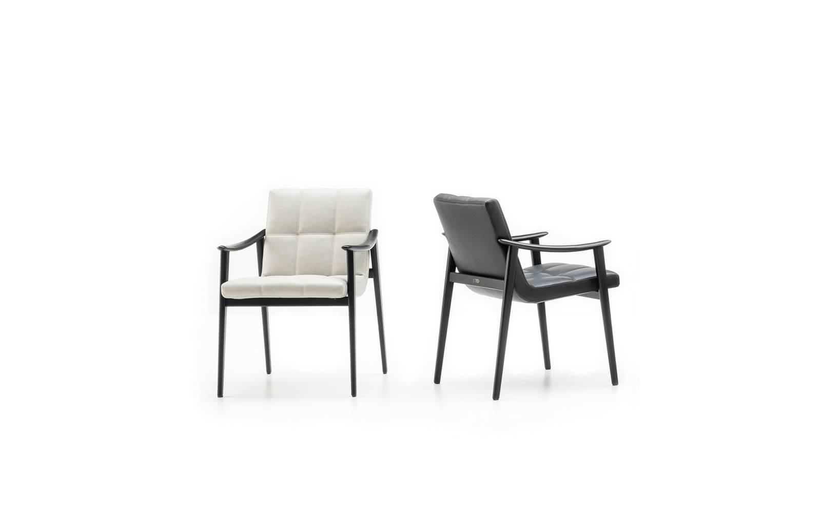 Rencontre des valeurs scandinaves et de la tradition italienne, le projet Fynn prend la forme d’une création conjuguant un travail du bois de haute ébénisterie avec une confection des revêtements en tissu et en cuir sellier particulièrement raffinée.