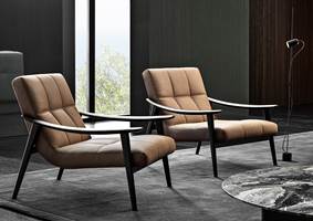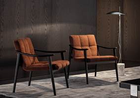 Rencontre des valeurs scandinaves et de la tradition italienne, le projet Fynn prend la forme d’une création conjuguant un travail du bois de haute ébénisterie avec une confection des revêtements en tissu et en cuir sellier particulièrement raffinée.