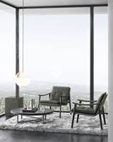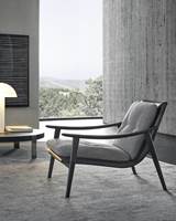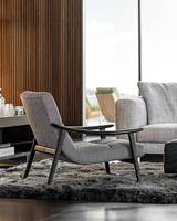 L’accoudoir constitue l’élément distinctif de Fynn : allongé, légèrement incurvé, arrondi et lisse au toucher, il est entièrement réalisé à la main tandis que ses lignes précises et nettes se retrouvent dans tous les éléments d’assise de la collection, dans les deux versions Fynn et Fynn Saddle-Hide. Fynn exprime, pleinement dans son association avec les revêtements en tissus et en cuirs sellier haut de gamme de la collection, l’excellence du travail recherché et sur mesure indissociable de Minotti.