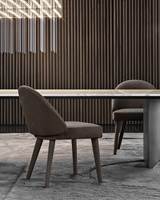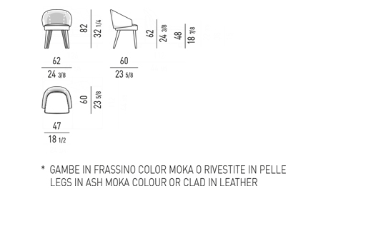 Les canapés et les fauteuils reposent sur des pieds en métal chrome ou finition Étain brillant, un luxueux détail qui fait ressembler le volume à un bijou. La vaste collection Lawson comprend également un fauteuil à pieds en frêne dans le couleur Moka ou habillés de cuir, un élément que l’on retrouve aussi dans le fauteuil lounge et la chaise dining.