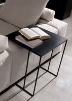 Structure : en fer plein verni avec une poudre époxy cuite au four (200°C) disponible uniquement dans le couleur Noir mat. Plateau : en placage de Ronce de Noyer mat.