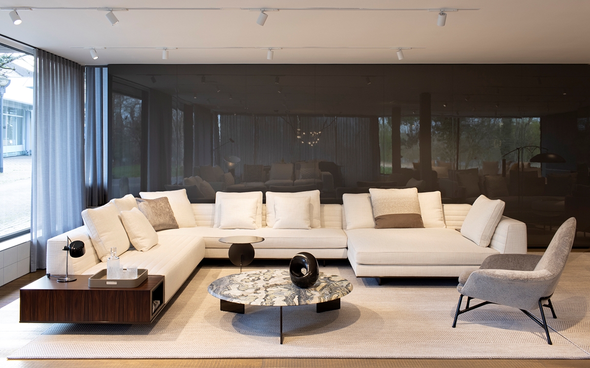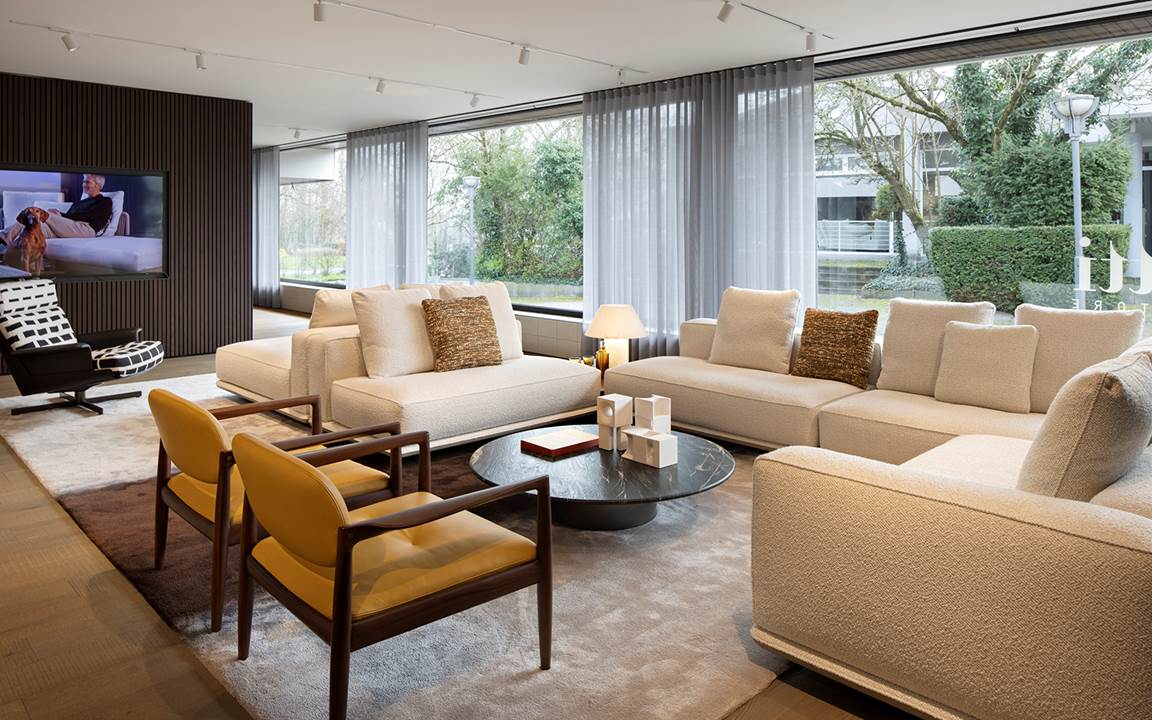 Premier Concept Store ouvert en Allemagne en collaboration avec son partenaire local de longue date, le Minotti by Meiser se renouvelle et agrandit sa surface d’exposition; lumineux et sophistiqué, l’espace devient la parfaite toile de fond des records de vente et des produits les plus emblématiques de la marque.