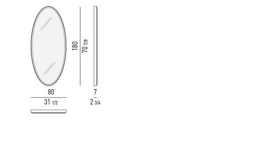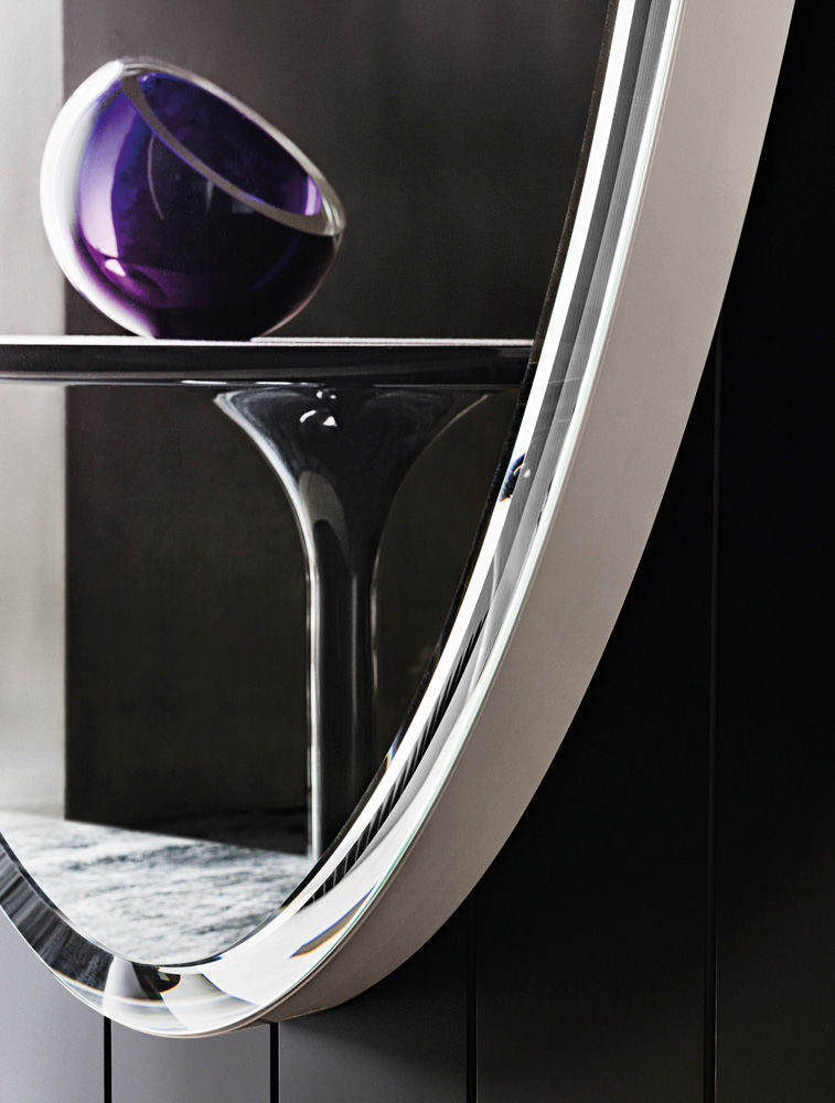 Murray est un miroir de forme elliptique, constitué d’un panneau laqué dans la couleur Sable sur lequel est montée une plaque-miroir transparente au bord biseauté. Murray est disponible aussi avec un panneau en palisandre laqué brillant. Equipé de doubles fixations, il peut être suspendu horizontalement ou verticalement, multipliant ainsi ses possibilités d’utilisation.