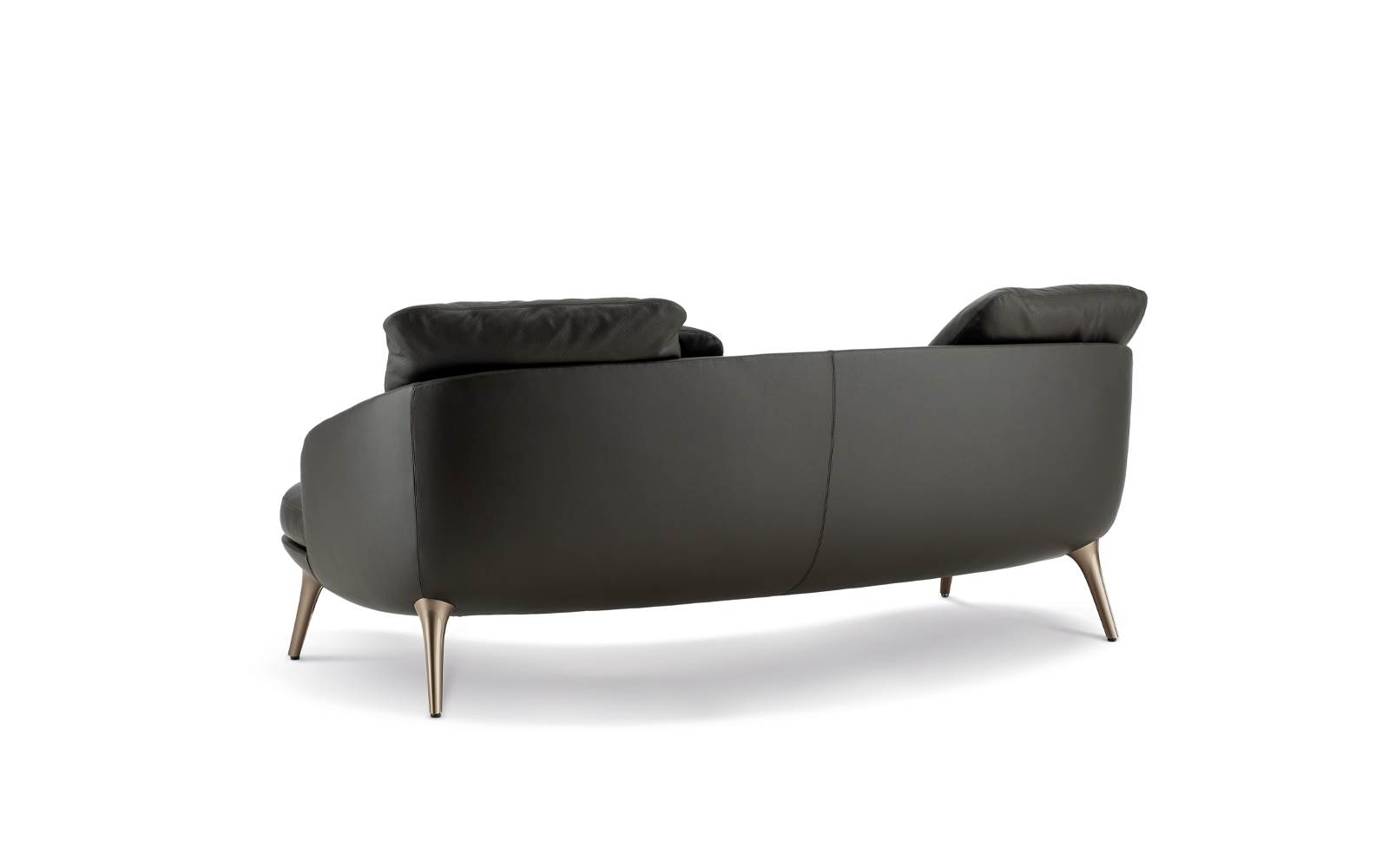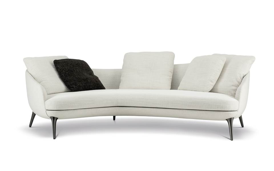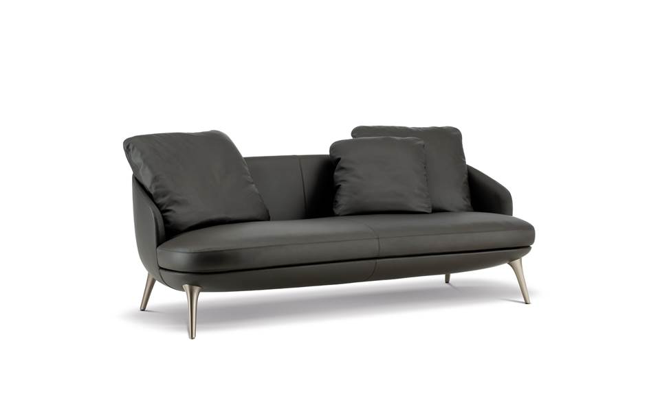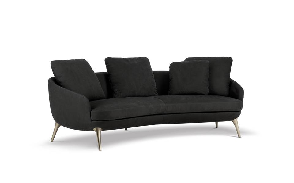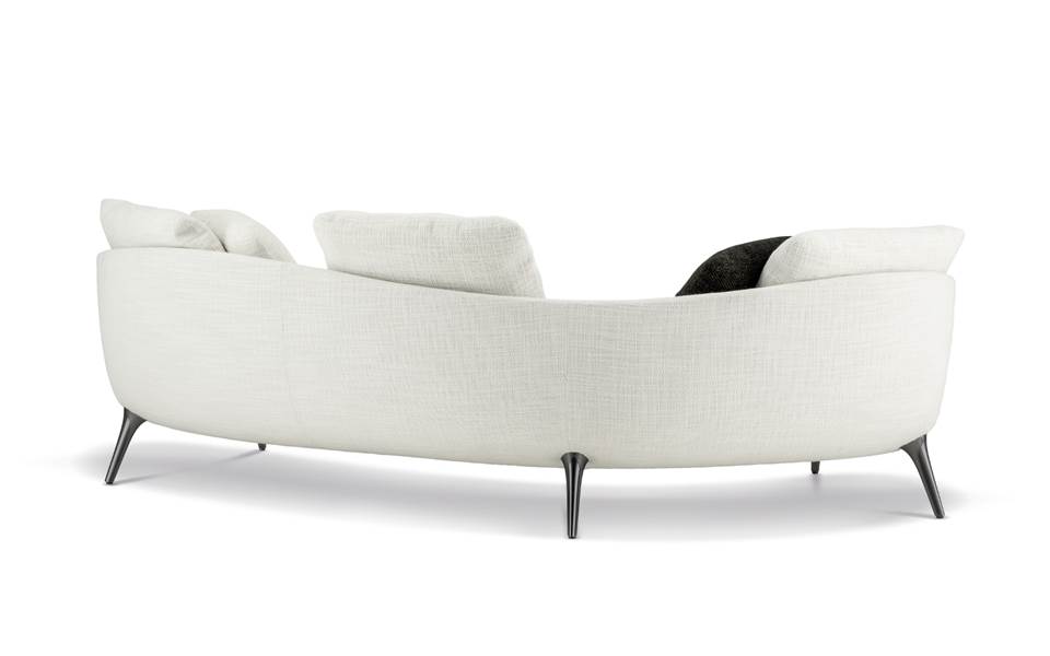 Les fauteuils sont disponibles aussi avec une base pivotante à quatre rayons en aluminium moulé sous pression en Bronze or en Étain brillant. Chaque élément de la gamme se distingue par sa propre personnalité et sa propre silhouette. Les canapés se déclinent en trois versions : linéaire, semi-incurvée et semi-incurvée asymétrique. Cette dernière version est rythmée par la succession de lignes sinueuses créée par le léger changement de hauteur du dossier.