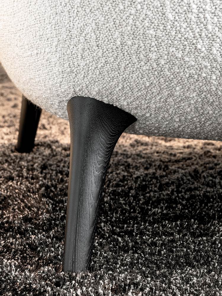Les canapés et les fauteuils Raphael reposent sur des pieds de style moderne réalisés en aluminium moulé sous pression Bronze ou Étain brillant ou en frêne teinté Réglisse dont les lignes s’adaptent aux formes de l’assise. Il en résulte un meuble aux lignes classiques réinterprétées dans un registre contemporain.