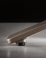 Le fauteuil Reeves Small avec base pivotante et système de retour repose sur quatre branches en métal moulé sous pression, finition Bronze satiné.