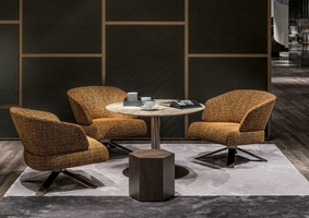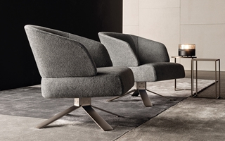 Avec leurs lignes harmonieuses et leurs proportions réduites, le fauteuil Reeves Small et le canapé demi-rond Reeves “Lounge” permettent de réaliser des espaces de conversation intime et personnelle tant dans un cadre résidentiel qu’à l’intérieur de projets dédiés à l’hospitalité.