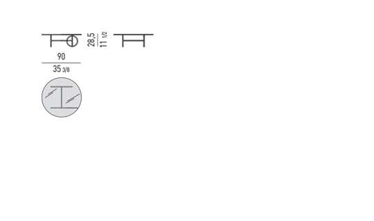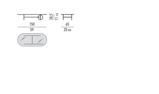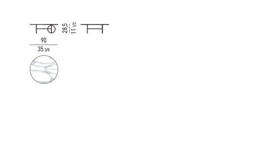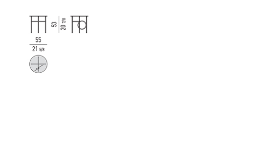 La structure en métal léger est définie par des lignes orthogonales interrompues par des anneaux placés dans des positions différentes. En plus de rompre avec la régularité géométrique de la silhouette, les cercles, selon la taille de la table, deviennent des éléments de connexion ou de support. L'œil est attiré par le vide au centre des anneaux qui procure une sensation d'espace et de légèreté.