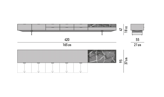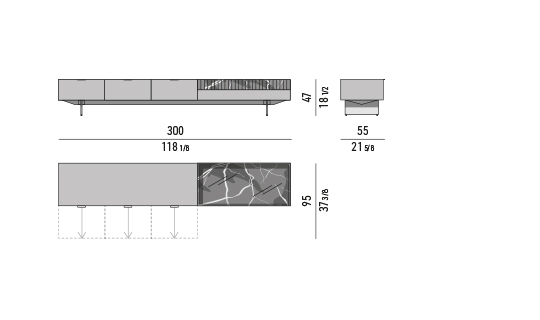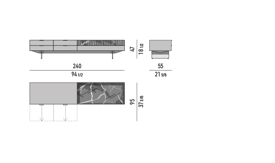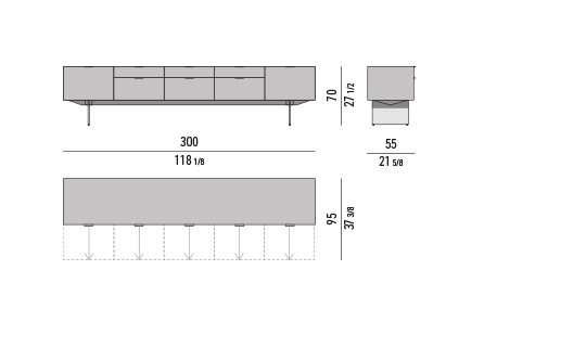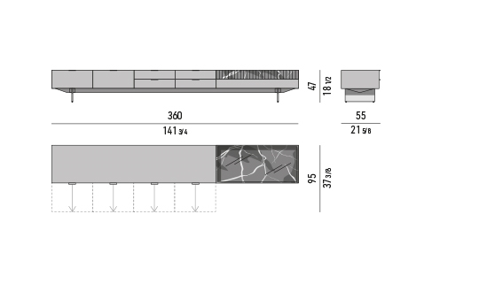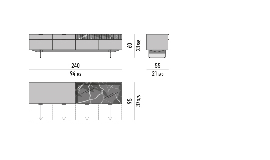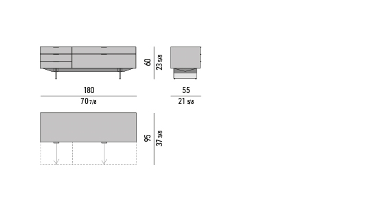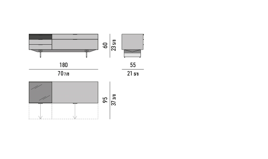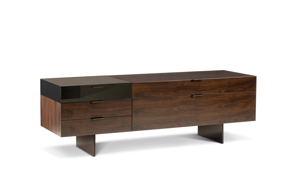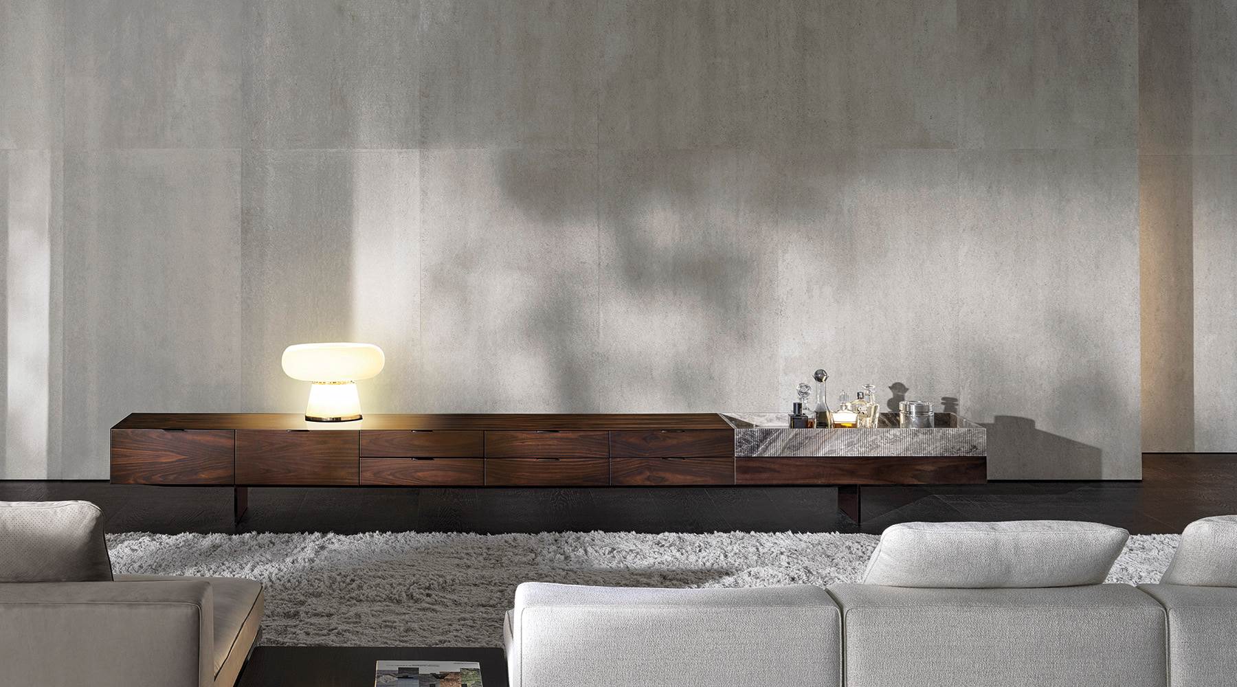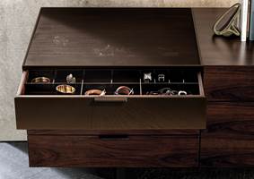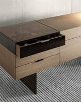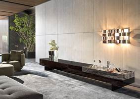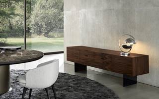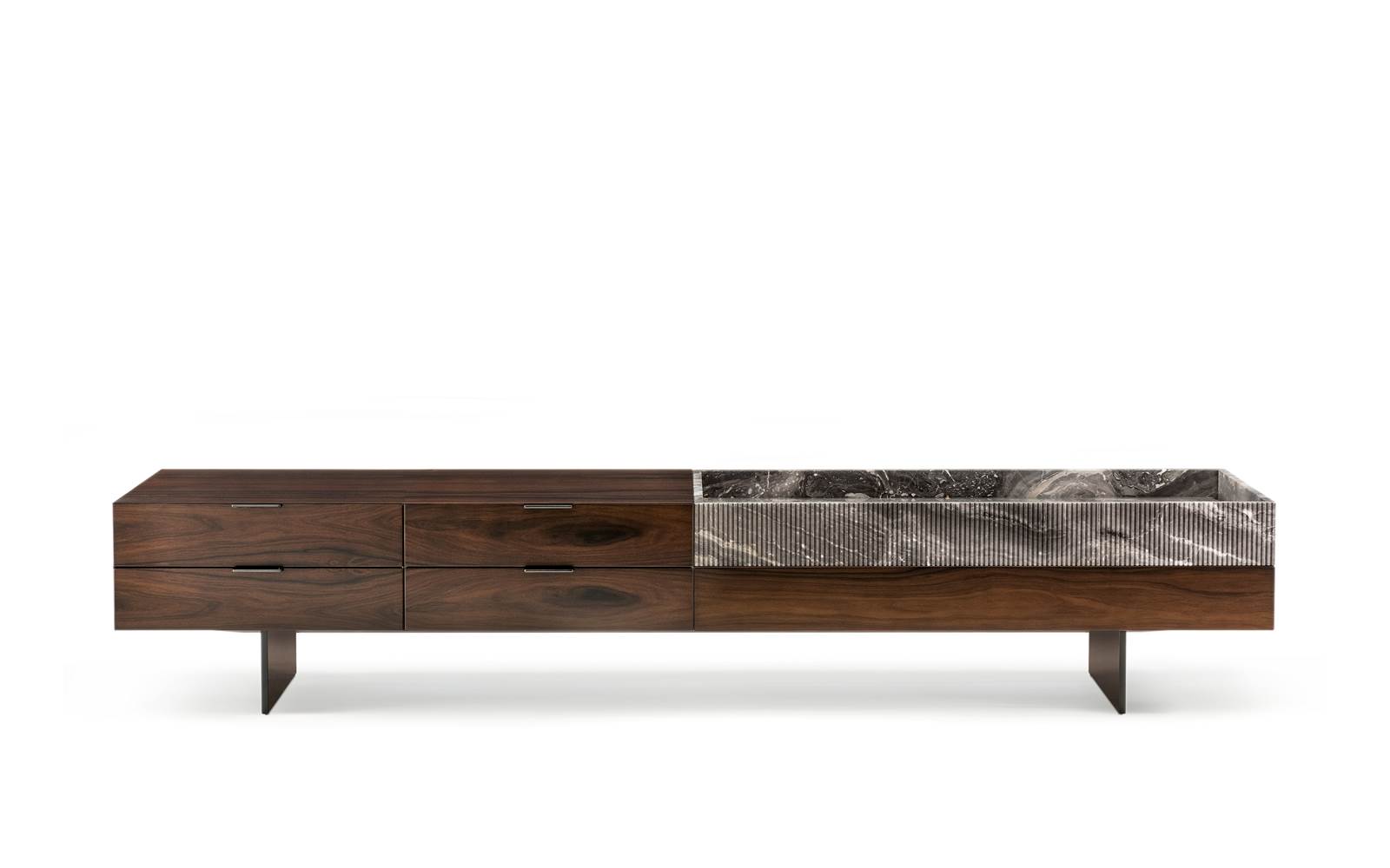 Conçu comme une véritable architecture, il se caractérise par un élément de rangement en bois ou laqué brillant disponible dans plusieurs finitions et reposant sur des lames en métal Brandy brillant. Meuble non seulement décoratif mais également fonctionnel, il a été pensé pour trouver sa place dans de multiples espaces, notamment grâce aux formes et aux accessoires de la gamme qui s’adaptent aux usages les plus divers. Dans les versions pour les séjours et les salles à manger, le meuble peut par exemple accueillir un élément en marbre brossé à forte personnalité spécialement étudié pour ranger des objets. Très raffiné, le plateau range-couverts en cuir noir, idéal pour les salles à manger, représente un autre accessoire particulièrement intéressant. Dans la version pensée pour la chambre, Superblocks comprend un très beau tiroir à bijoux doté d’un plateau en verre armé.