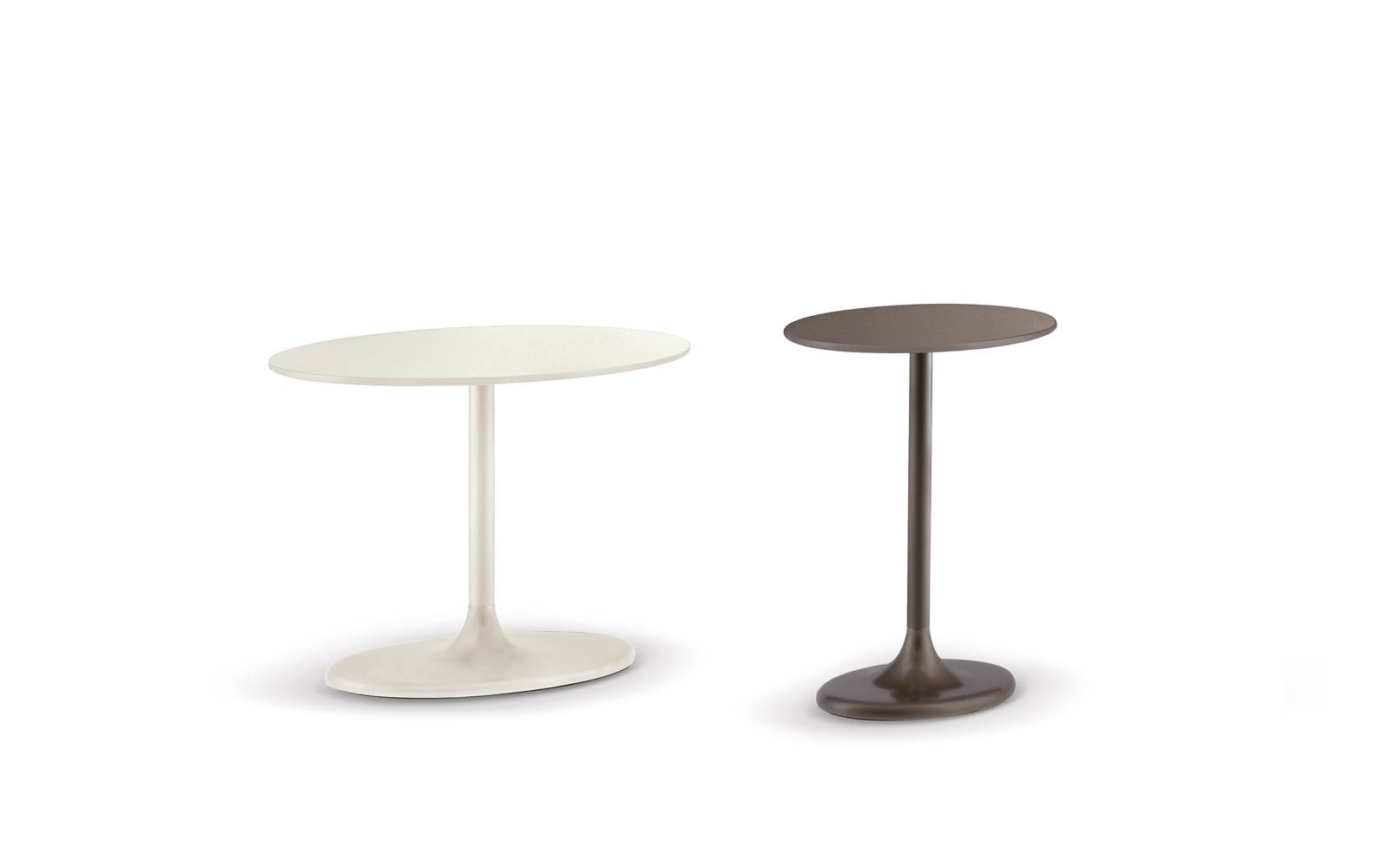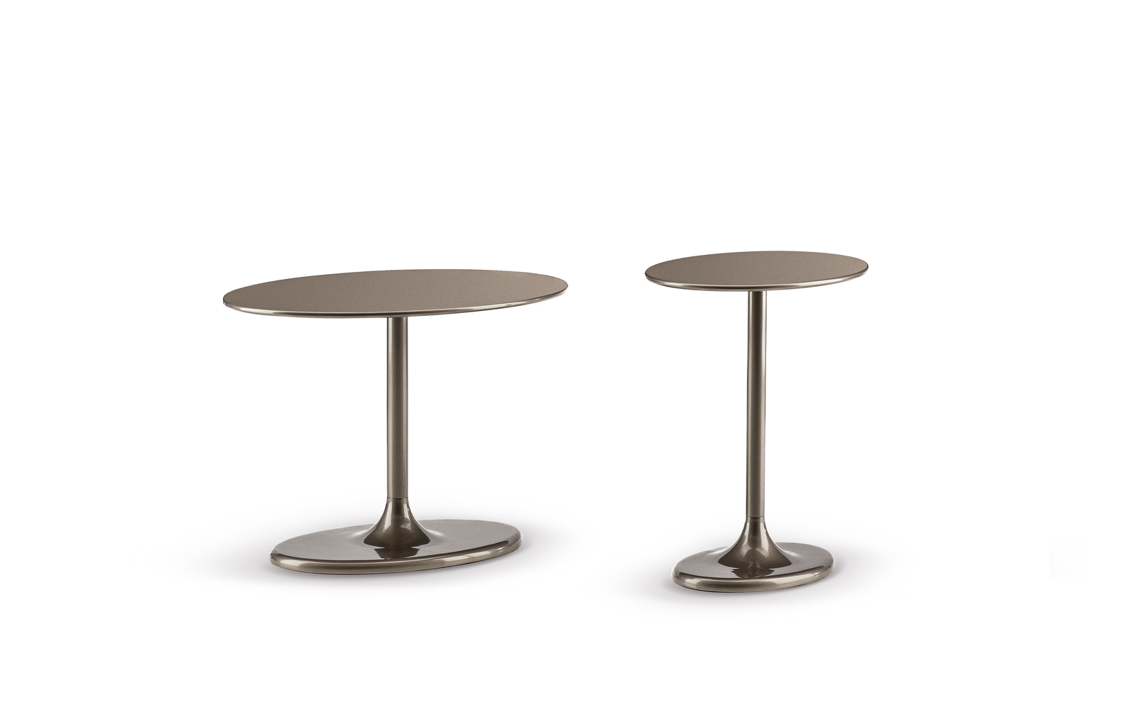 Réalisé en aluminium peint brillant couleur Bronze ou dans les nouvelles finitions Moka et Cappuccino, le plateau de forme ovale est également disponible en version mate dans les coloris Écru et Marron Foncé. Il repose sur une base en aluminium coulé peint dans la même couleur que le plateau. Afin de s’intégrer parfaitement dans n’importe quel espace en plein air, Taiko Outdoor est proposé en trois dimensions.