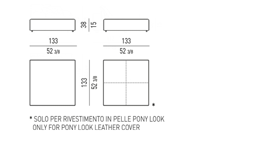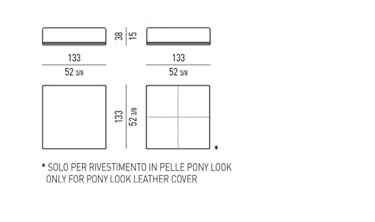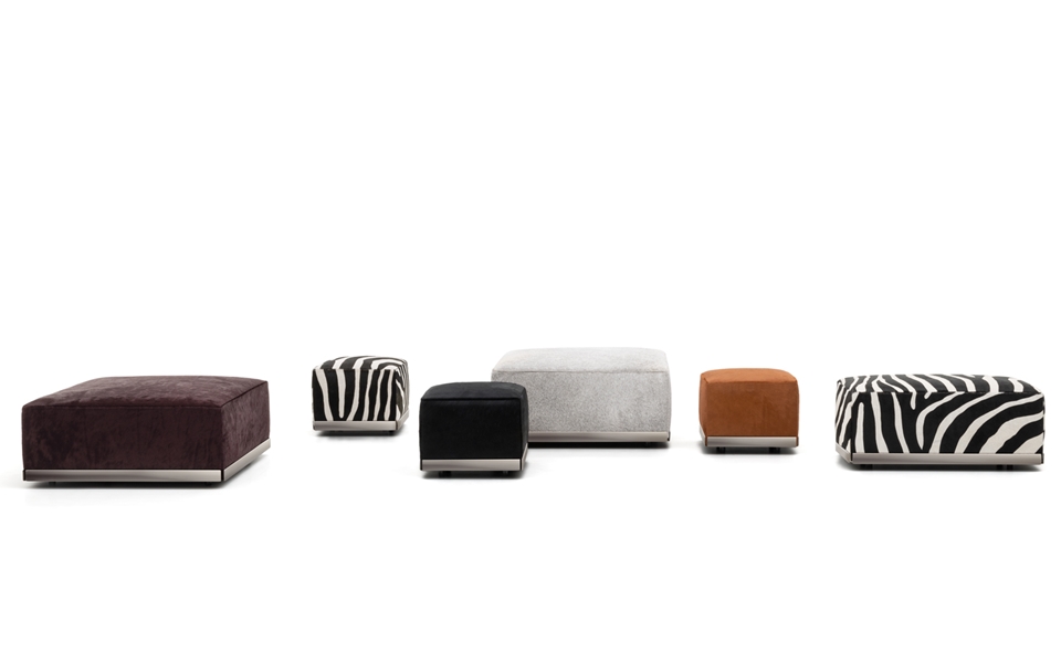 Les poufs, en revanche, peuvent être disposés de manière à compléter les configurations et, surtout grâce à leur revêtement en peau effet poney, ils apportent une touche encore plus glamour et élégante à l’espace.