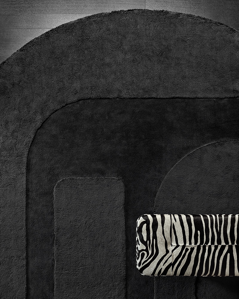 Le motif original, décliné en version macro afin de couvrir tout le champ du tapis, a été conçu par Minotti Studio pour illustrer la sensibilité de la marque en matière de décoration des espaces.