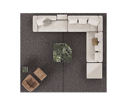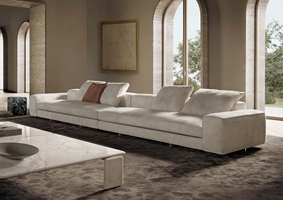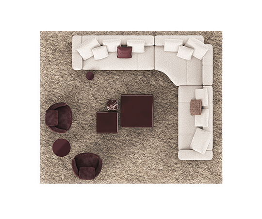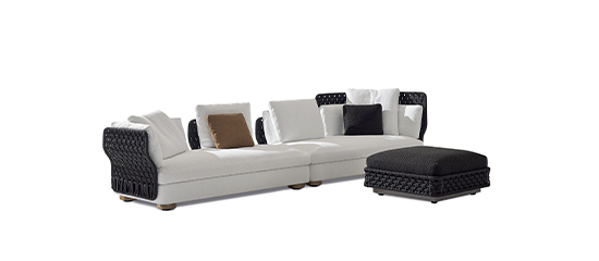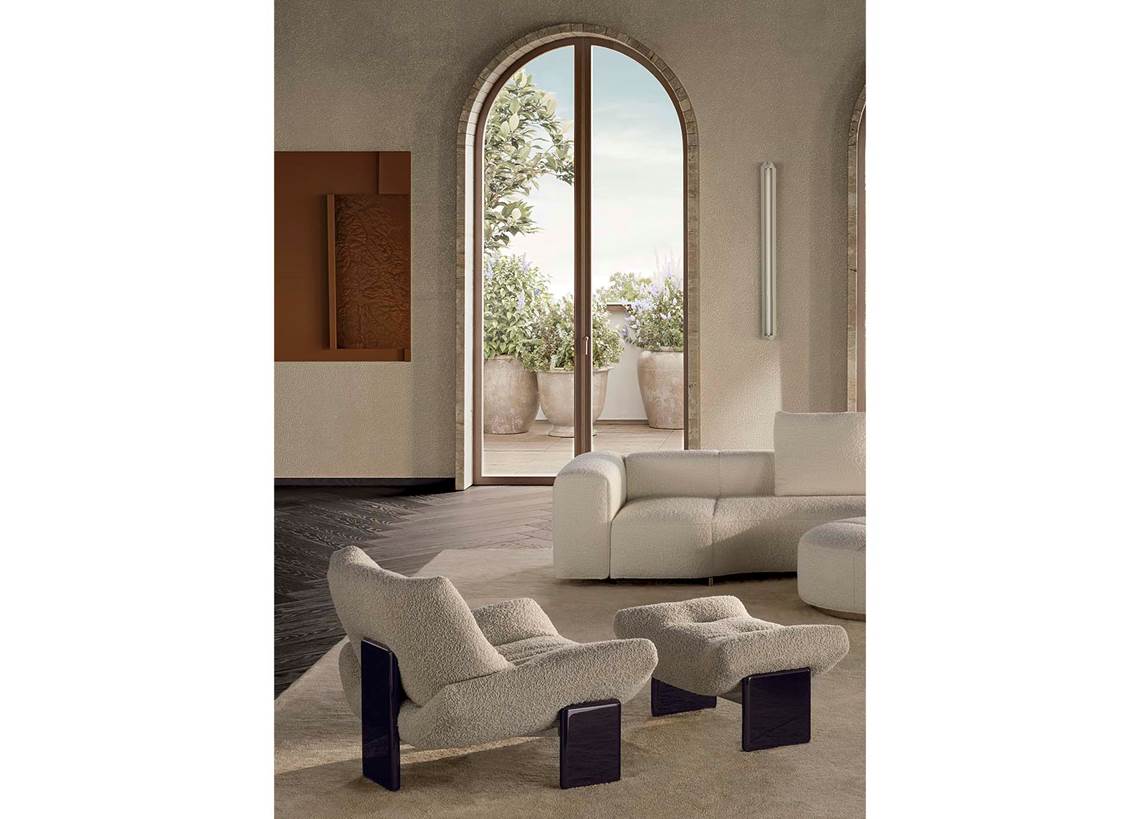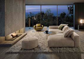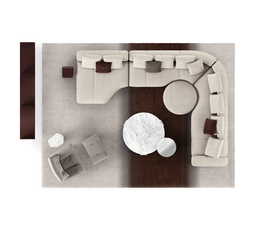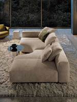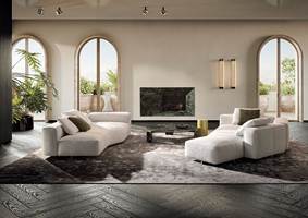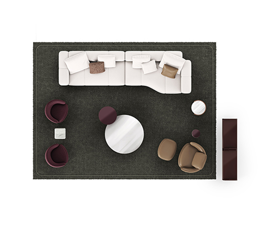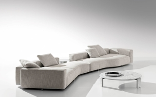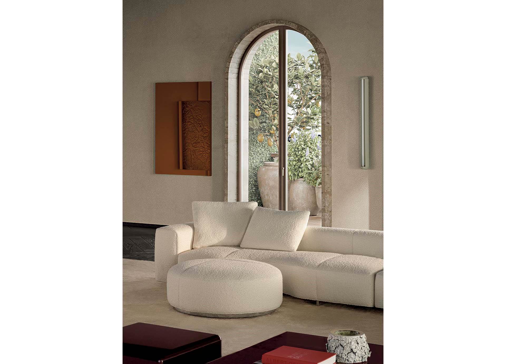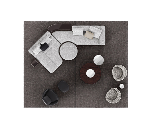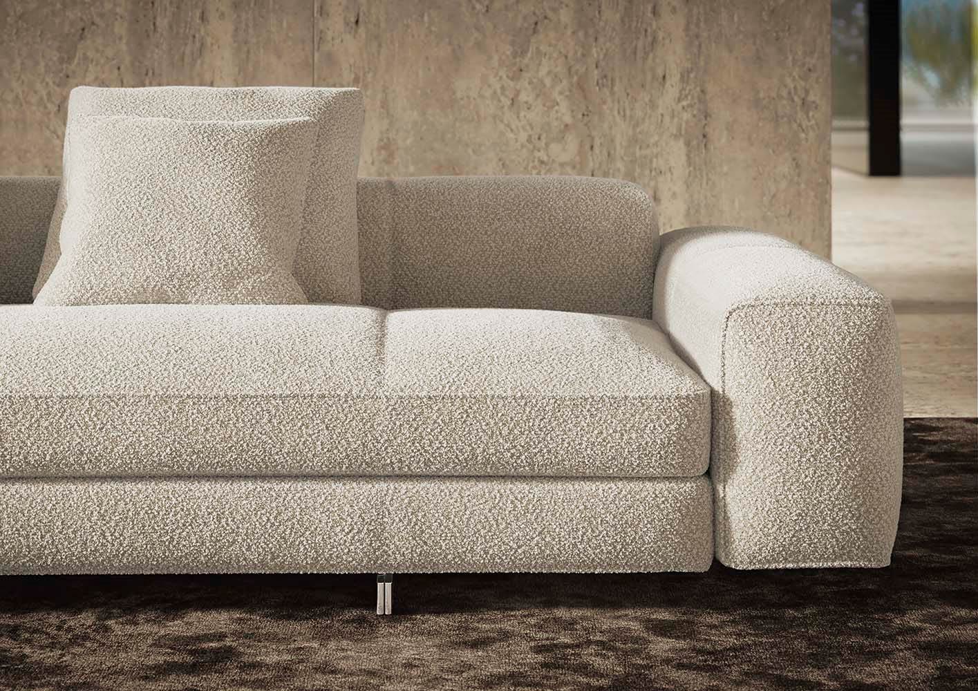 Les lignes fluides des assises monoblocs donnent naissance à plusieurs profondeurs propices à la réalisation de compositions accueillantes ; à l’instar de criques, les modules ouvrent ainsi des espaces qui se transforment en lieux idéaux pour des poufs ou de petites tables pour mieux adapter le canapé à l’évolution constante de l’habitat contemporain.