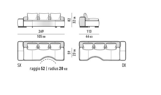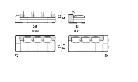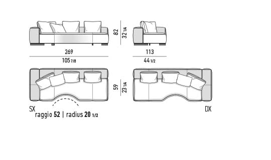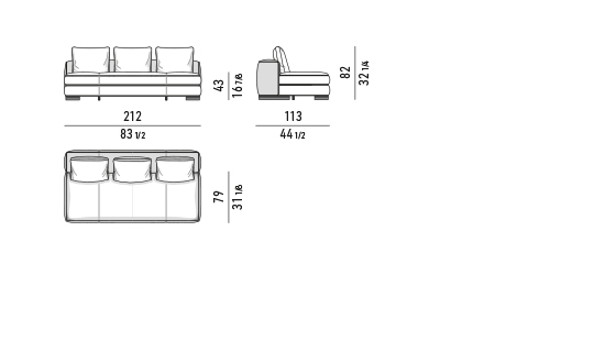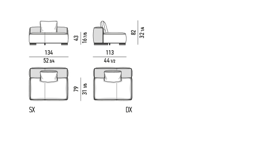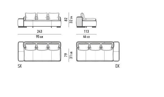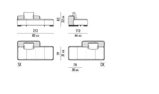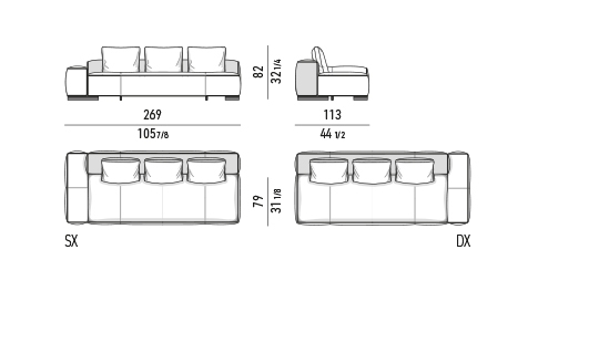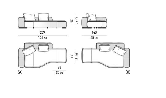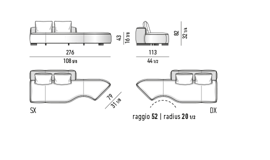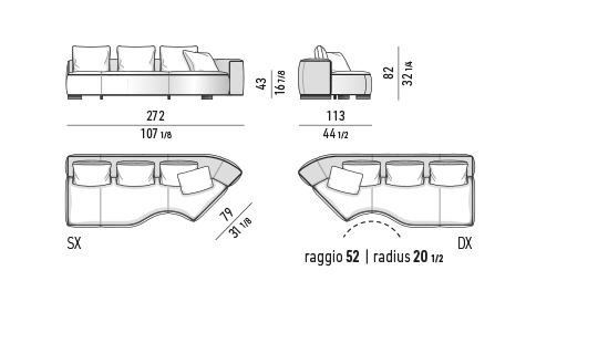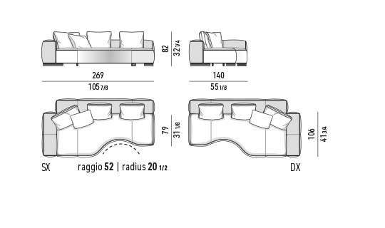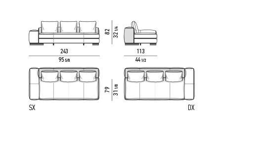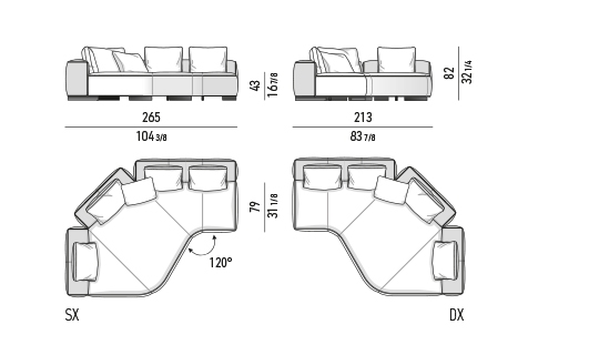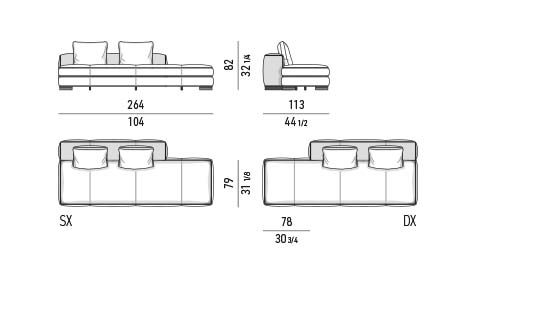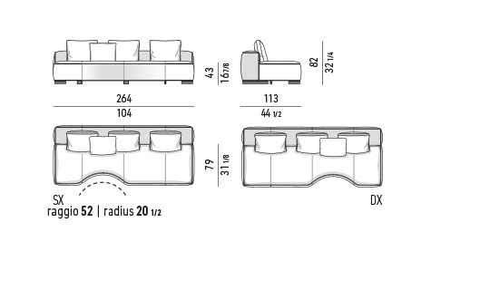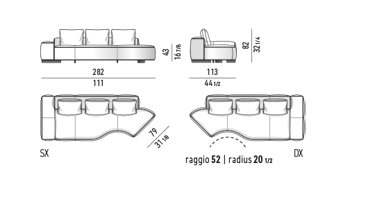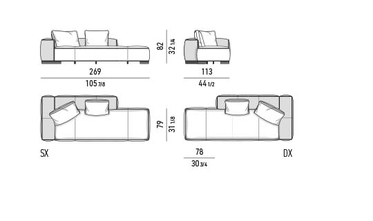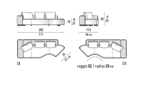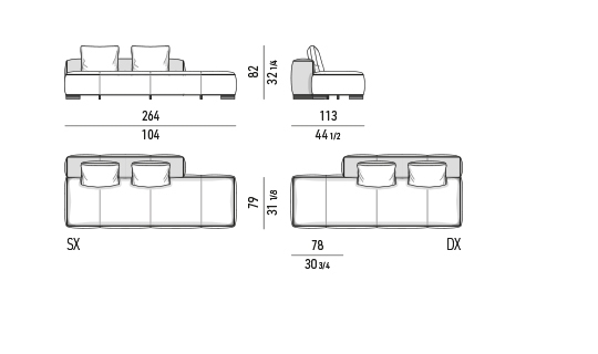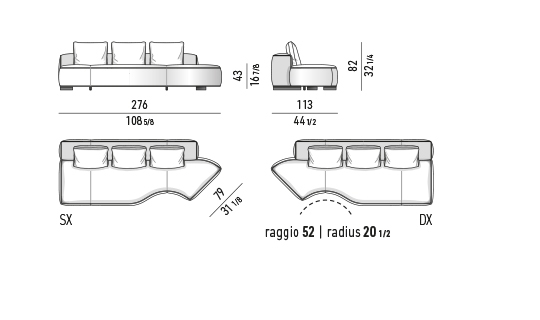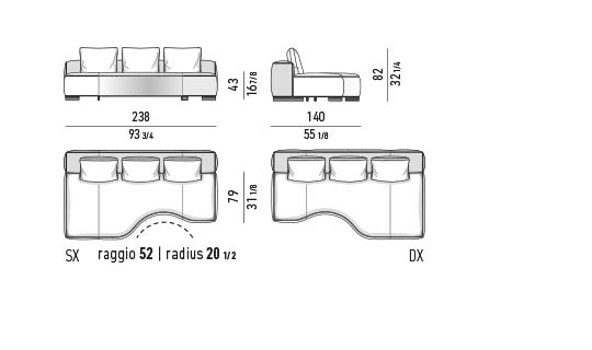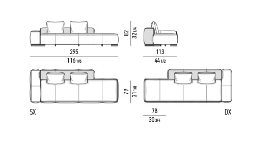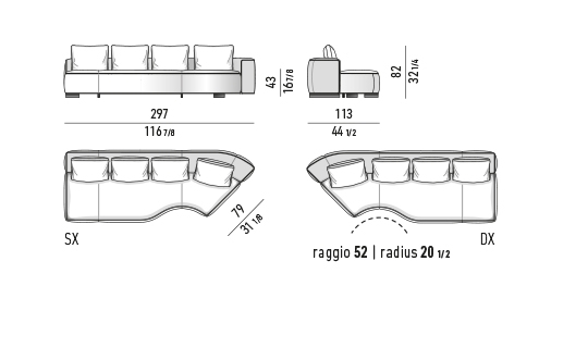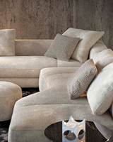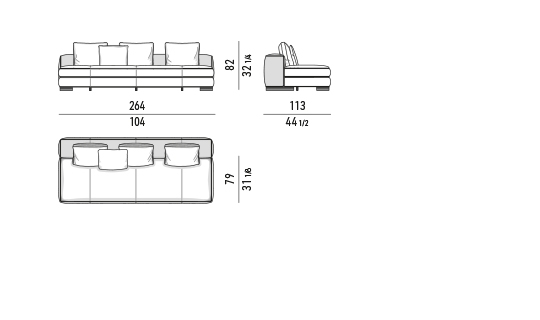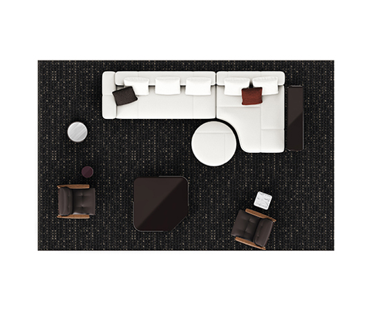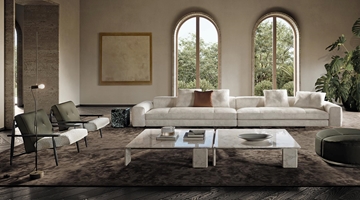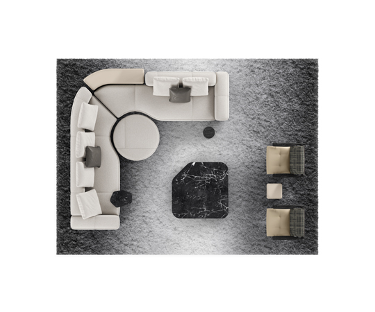Les lignes fluides des assises monoblocs donnent naissance à plusieurs profondeurs propices à la réalisation de compositions accueillantes ; à l’instar de criques, les modules ouvrent ainsi des espaces qui se transforment en lieux idéaux pour des poufs ou de petites tables pour mieux adapter le canapé à l’évolution constante de l’habitat contemporain.