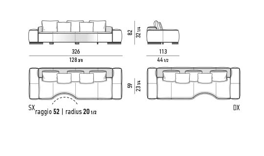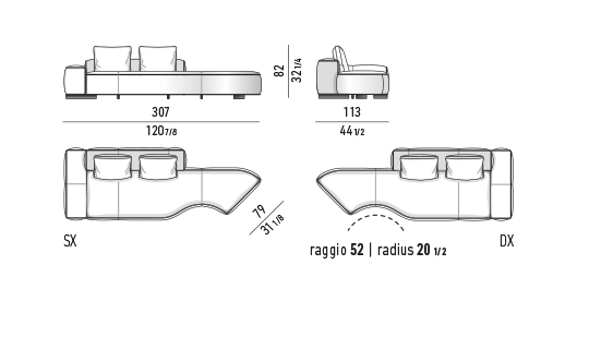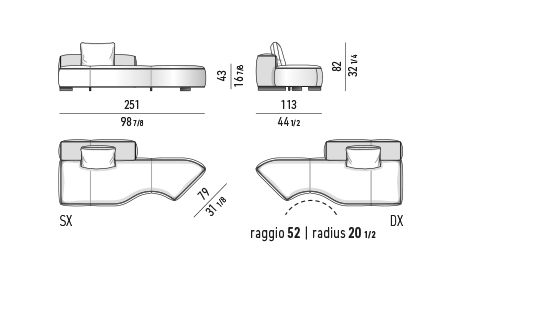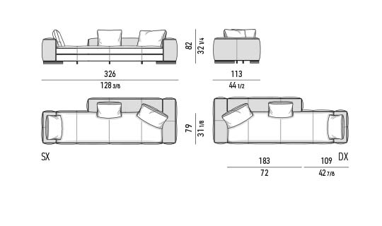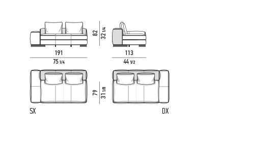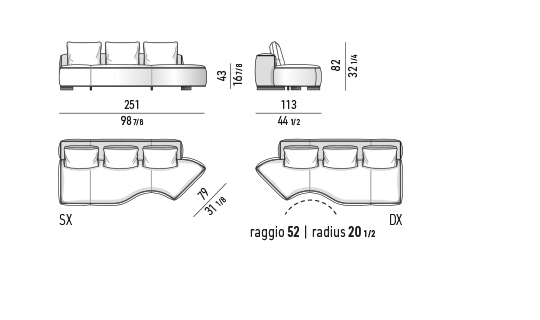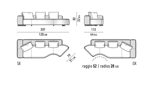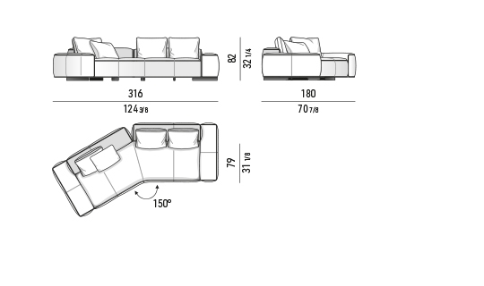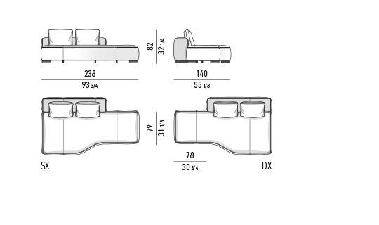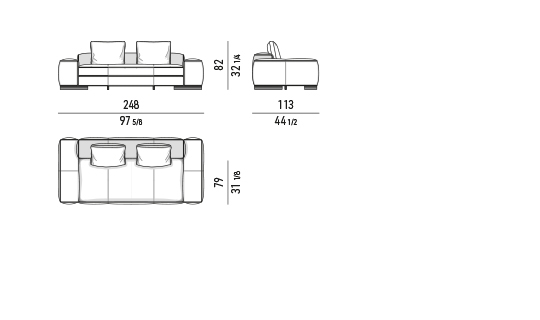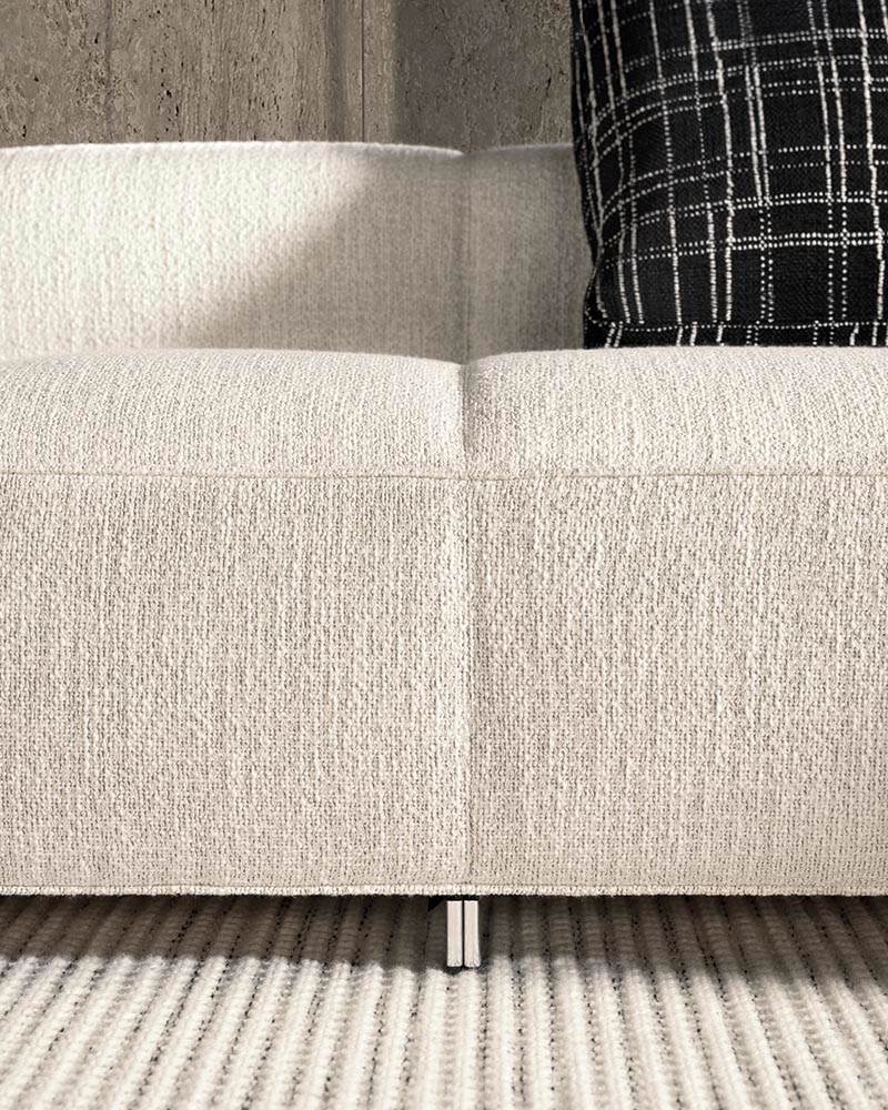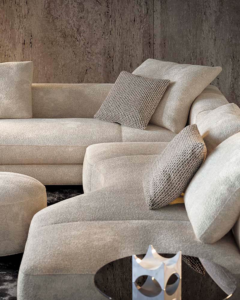 Élément distinctif du système, cet art de la couture s’allie aux formes sinueuses pour faire d’Yves un véritable de paysage domestique ; un meuble qui parvient à transcender la modularité traditionnelle pour donner forme à des configurations non seulement uniques et innovantes mais aussi créatives et asymétriques tout en restant rassurantes et très confortables.