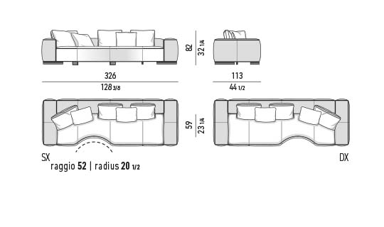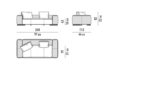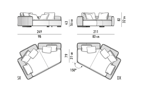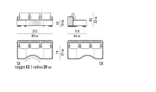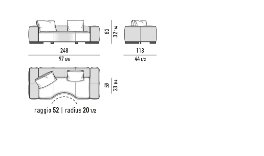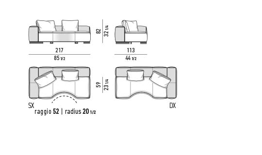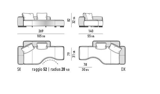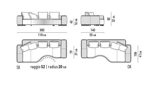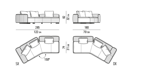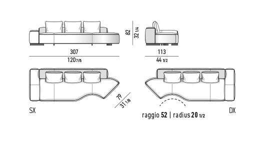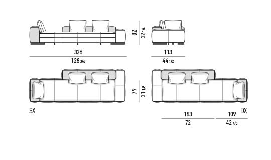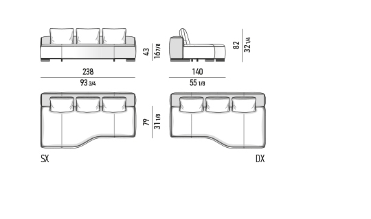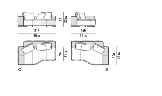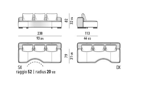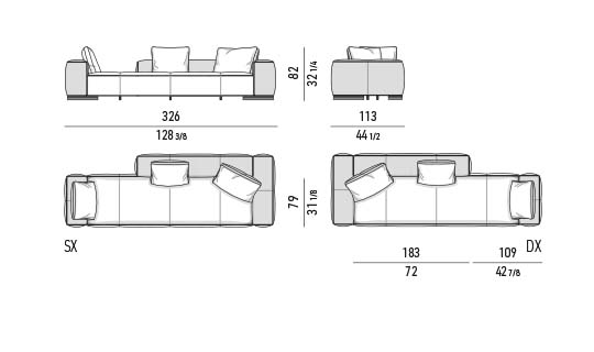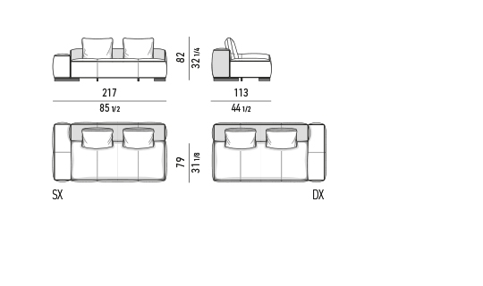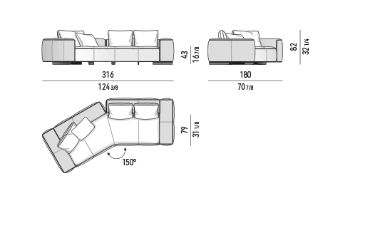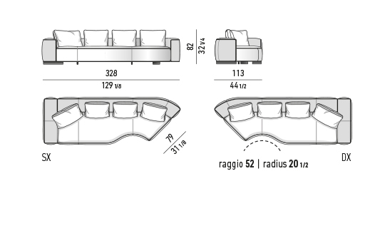 Élément distinctif du système, cet art de la couture s’allie aux formes sinueuses pour faire d’Yves un véritable de paysage domestique ; un meuble qui parvient à transcender la modularité traditionnelle pour donner forme à des configurations non seulement uniques et innovantes mais aussi créatives et asymétriques tout en restant rassurantes et très confortables.