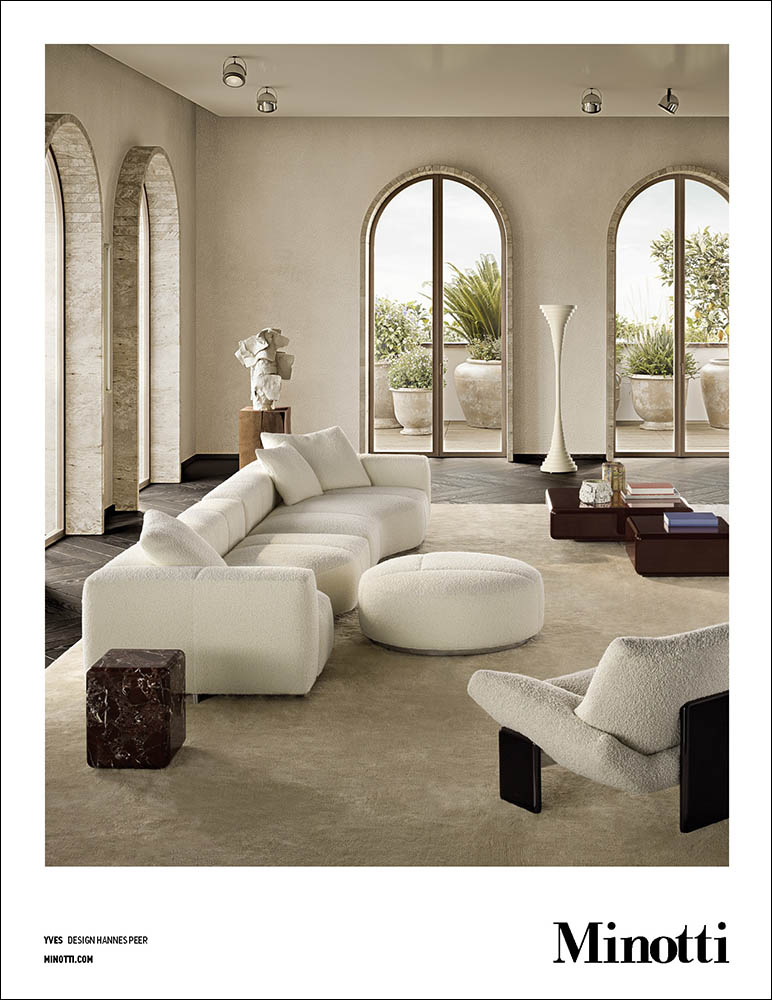 Déclinant un concept architectural intemporel, les espaces deviennent le théâtre d’une présentation où l’innovation et la tradition se mêlent au gré d’un flux incessant de créativité. Inattendus tout en restant en parfaite adéquation et harmonie avec l’identité de la marque, les agencements matérialisent les éléments indissociables de l’art de vivre de Minotti, sublimés par des œuvres d’art et des décorations raffinées.