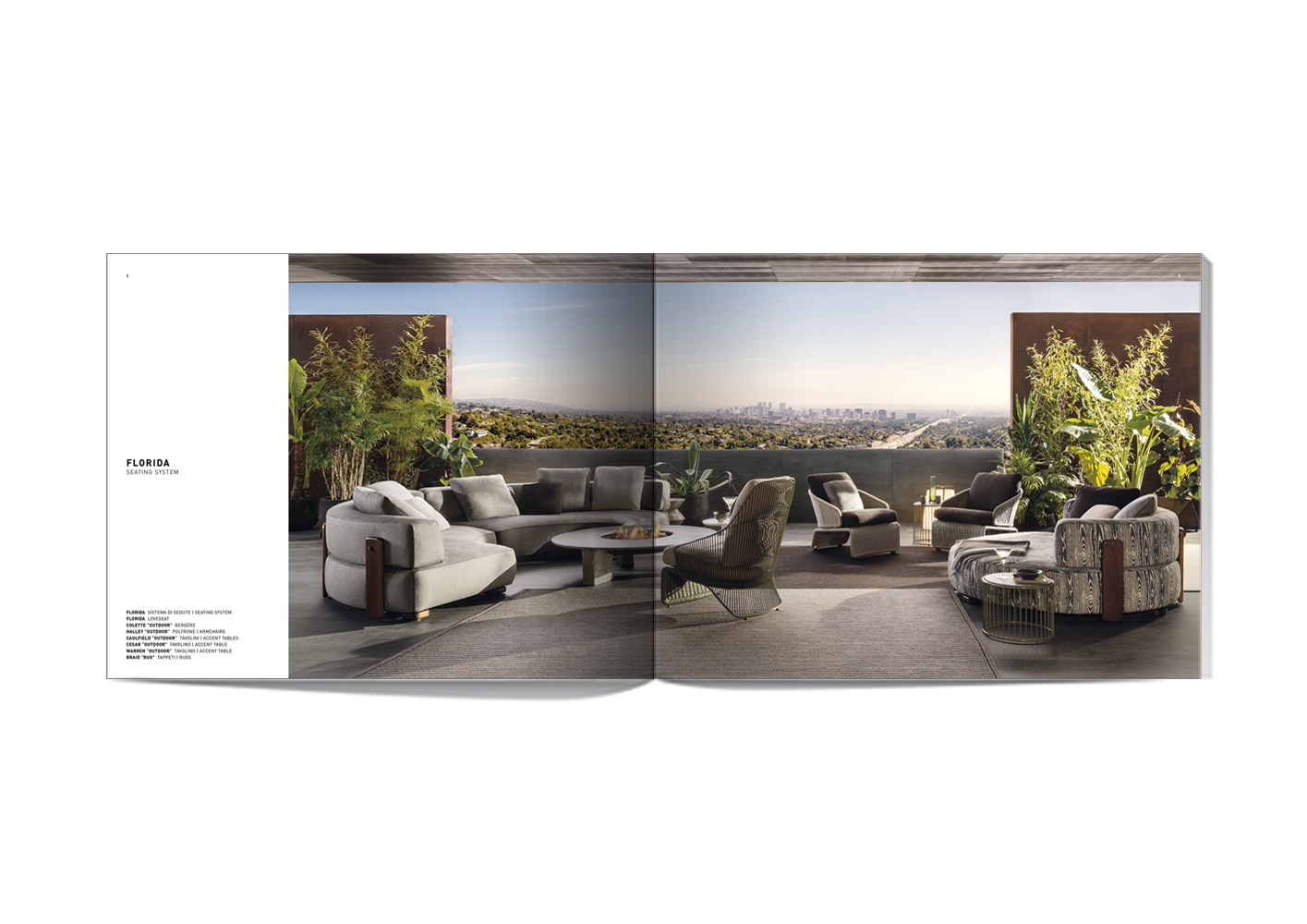 Il sistema di sedute Florida, con le sue forme sinuose e i suoi volumi morbidi, la famiglia Halley “Outdoor”, la poltrona Colette “Outdoor” ed i numerosi complementi consentono di realizzare delle ambientazioni outdoor dal carattere versatile e conviviale, nelle quali intrattenersi con amici e familiari, godendo degli spazi esterni per tutto l’anno.