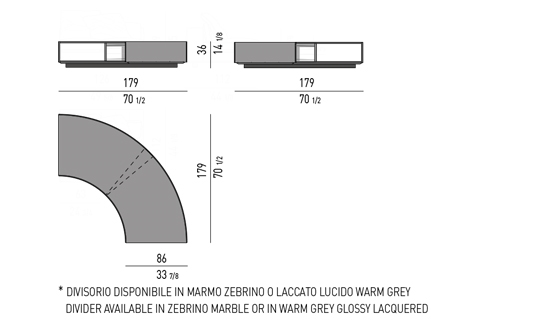 Elemento di rottura dello schema lineare, ma al contempo di raccordo, Amber diventa protagonista a centro stanza per la creazione di zone living dinamiche e altamente originali.