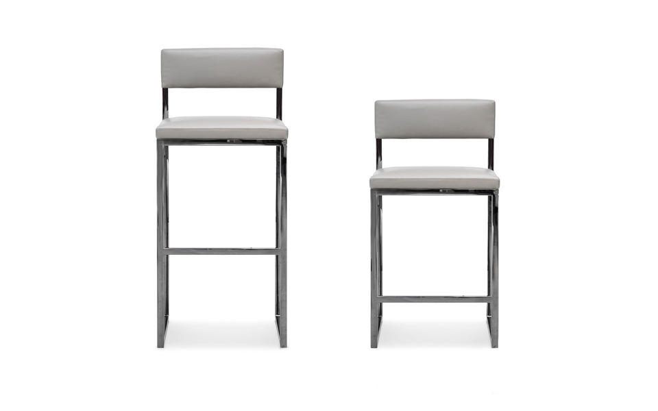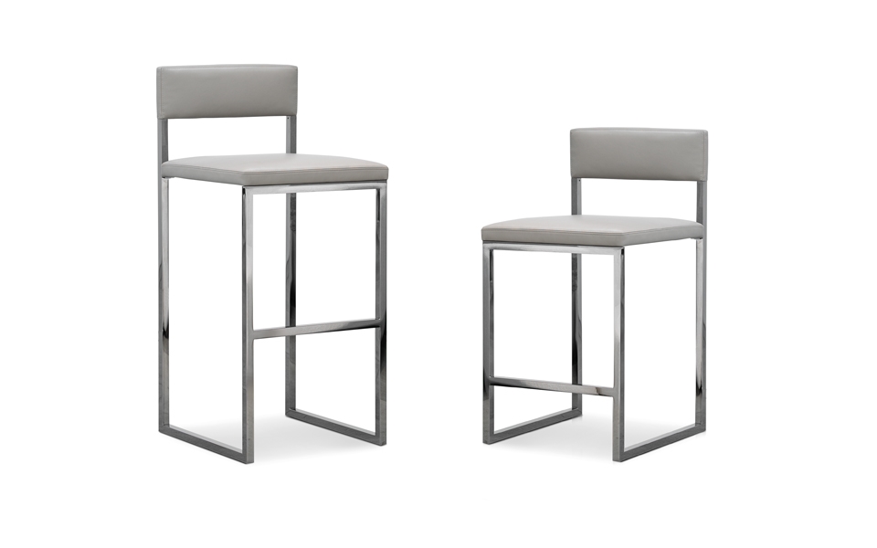 Disponibile in due altezze da 97 e 110 cm, perfetto per adattarsi ai più diversi contesti residenziali ed Hospitality, la base in metallo è disponibile nella finitura Black-Nickel lucido mentre, il rivestimento della seduta imbottita, è previsto sia nella versione in pelle che nella versione in tessuto.