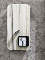 La famiglia è completata da elementi di servizio di forma squadrata con cassetti o vano passante valorizzato da una lastra di metallo satinato che ne riveste la superficie interna. Quest'ultimo è disponibile anche in versione girevole.