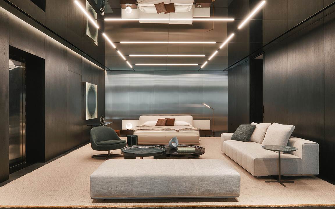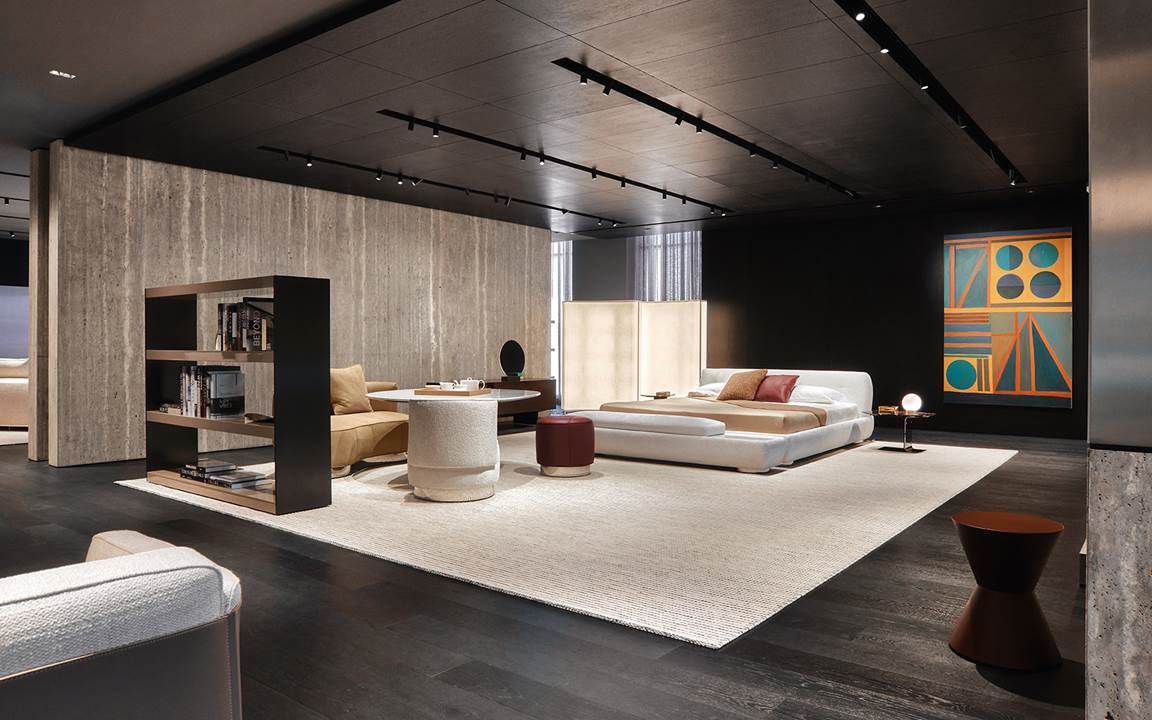 Ideato e realizzato da Minotti Studio, il progetto di interior design coniuga elementi originari dell’edificio con segni distintivi dello stile Minotti, in un percorso espositivo che si trasforma in una coinvolgente design experience.