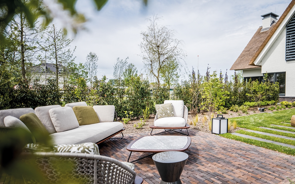 La sofisticata raffinatezza che caratterizza le ambientazioni interne si ritrova anche nelle scelte per gli spazi outdoor, che vedono l’utilizzo di elementi di seduta e tavolini della serie Rivera: una collezione che interpreta in chiave contemporanea un sapore marcatamente retrò e che rievoca atmosfere tipicamente mediterranee.