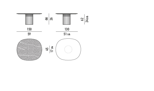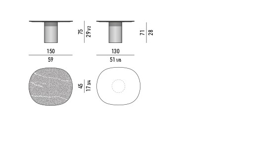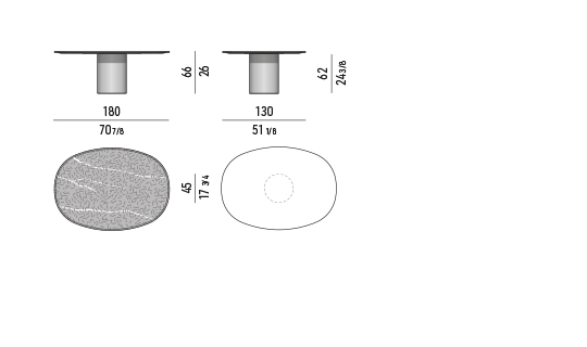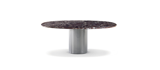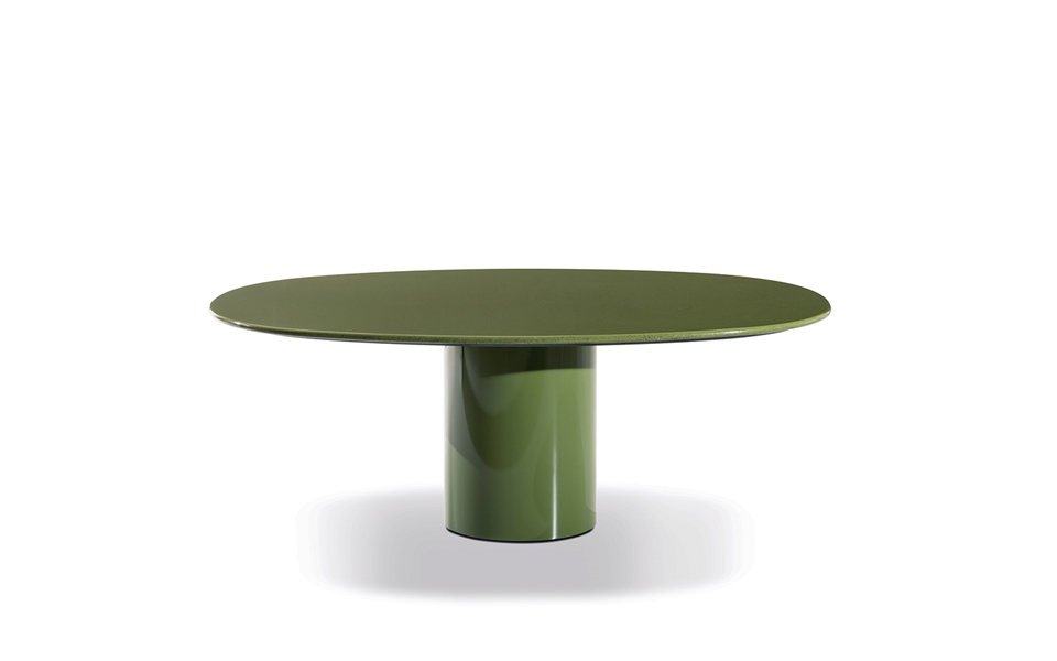 Proposto in due diverse altezze, il suo piano è realizzato in pietra lavica e polvere di vetro colato e poggia su una base in acciaio inox nella medesima tonalità del top. Ispirate ai colori della natura, le nuances Ruggine, Verde, Cappuccino e Celadon creano un’atmosfera in armonia e continuità cromatica con l’ambiente circostante.