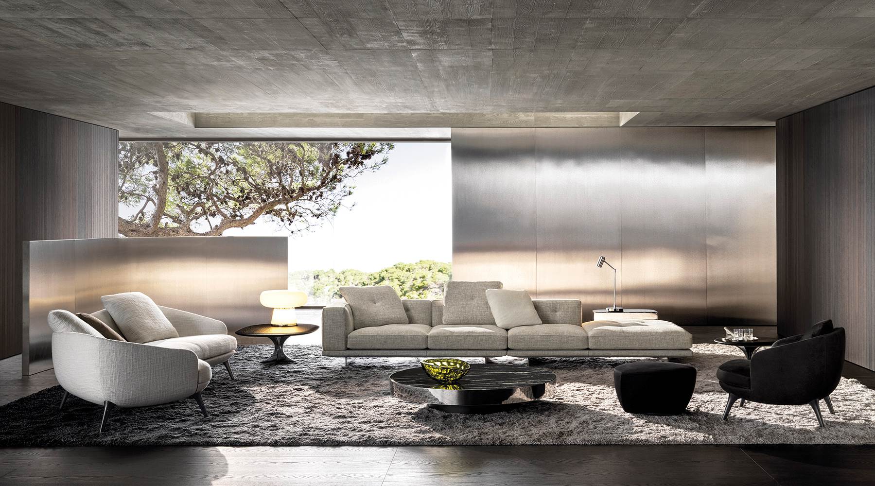 厳格でありながら居心地がよく、コンテンポラリーでありながらクラシックなDylan。建築的なボリューム、アームレストやバックレストの体を包み込むような湾曲デザインといった、さまざまな表情を持つDylanは、配置する空間やそこに迎える人々に合わせて、まるで立体的なドレスのようにオーダーメイドすることができるのです。
