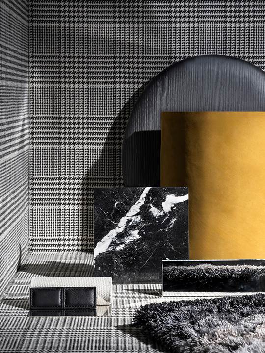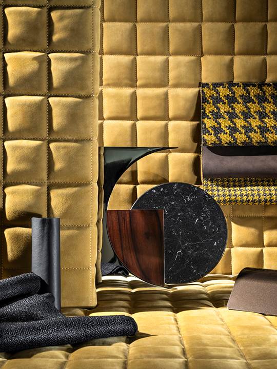 サルトリアの伝統的な千鳥格子やグレンプレイドが、さらにはオットマンのような古来のエキゾチックな織物が、洗練さと落ち着きのある雰囲気を醸し出し、幾何学的なアクセントでムードボードを特徴づけています。インドア用のカバーリング提案も、深みのある上質さが際立つ、極めてナチュラルな外観が特徴の新しいボストンレザーや、コレクションの定番である、心地よい柔らかな手触りが特徴のヌバックの新色を加え充実しています。