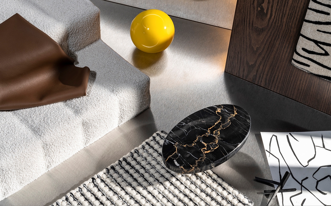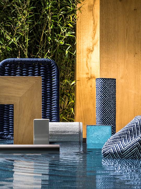 理想的なインドアとアウトドアにおけるスタイルの連続性の中で、色とテクスチャが、フォルムと洗練された仕立てを際立たせるようにデザインされ、木材、大理石、ラッカー仕上げとの調和を大切にしています。