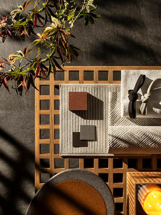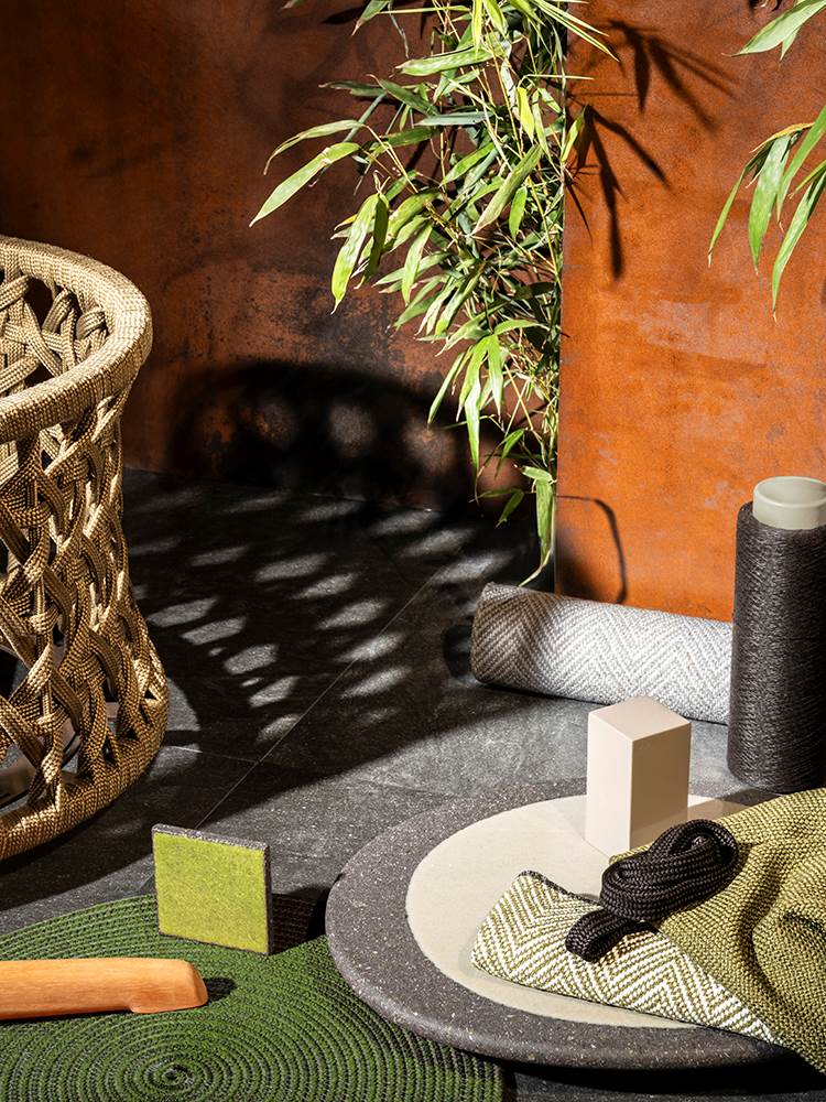 アウトドア用にデザインされた新作テキスタイルにも、自然からインスピレーションを得た色合いが用いられています。バスケットモチーフ、シェブロンデザイン、3Dピクセル、パナマクロスなど、織りやパターンが特徴的なこれら新作は、天然繊維や完全にリサイクル可能なポリプロピレン糸を用い、環境に配慮したデザインとなっています。