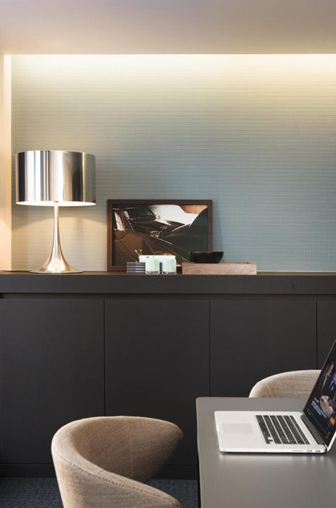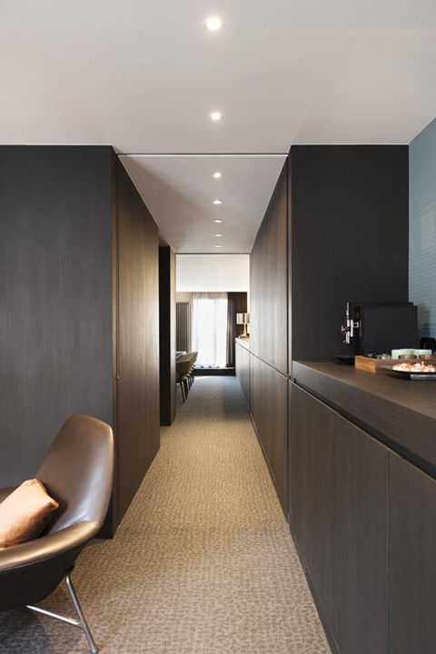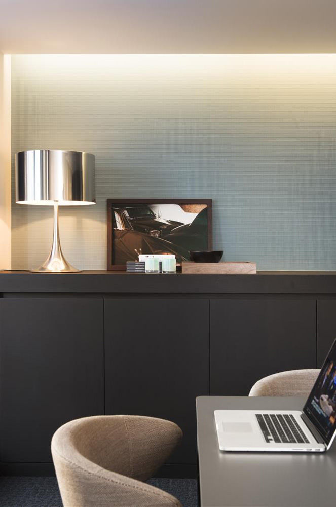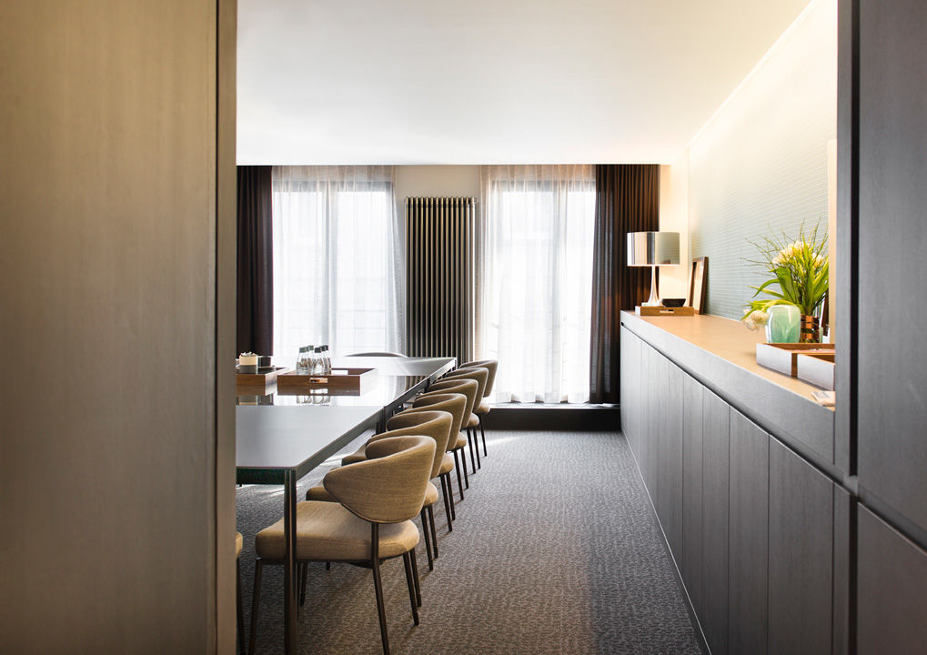 オフィス、会議室、ラウンジエリアには、Minottiコレクションの製品が優雅に配置されています。快適なSherman.93ソファ、茶色のAspenレザー張りのPrinceアームチェア、Sullivanサイドテーブルが洗練されたレセプションエリアのアトモスフィアを高め、ラッカー仕上げのグラナイトカラーの天板を持つJornテーブルとMillsチェアが会議室にエレガントなスタイルをもたらしています。Club 48 Museumstraatは、ベルギー、オランダ、ドイツ、フランス、英国を行き来するビジネスマンにとって、フランドル地方の戦略的な中心地に位置しているため、ミーティングに完璧な場所となっています。