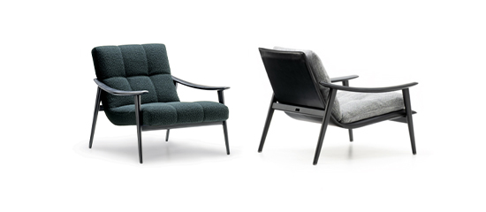 デザインのポイントは内側コーナーが丸くなったバックレストで、快適で包み込まれるようなニッチ空間が生まれ、高いバックレストとアームレストを備えたシェーズロングは、アルコーブに包み込まれるような快適性をもたらします。