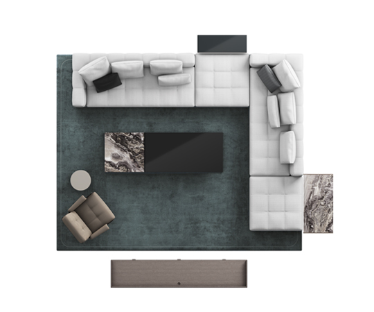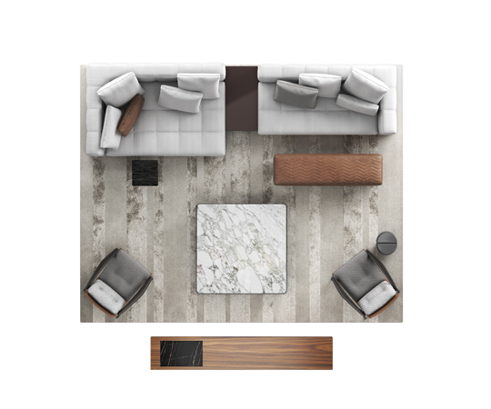 個性豊かなソファとモジュール式エレメントで構成された幅広いラインナップは、専用エレメントやカバーリングを自由にカスタマイズでき、オリジナリティあふれる空間を生み出せます。コーヒーテーブル、コンソール、ベンチ、アームチェアなど2020コレクションのアイテムとのミックス&マッチなコンポジションが可能で、シンメトリーを巧みに崩すことで、個性的なリビングエリアをデザインすることができます。