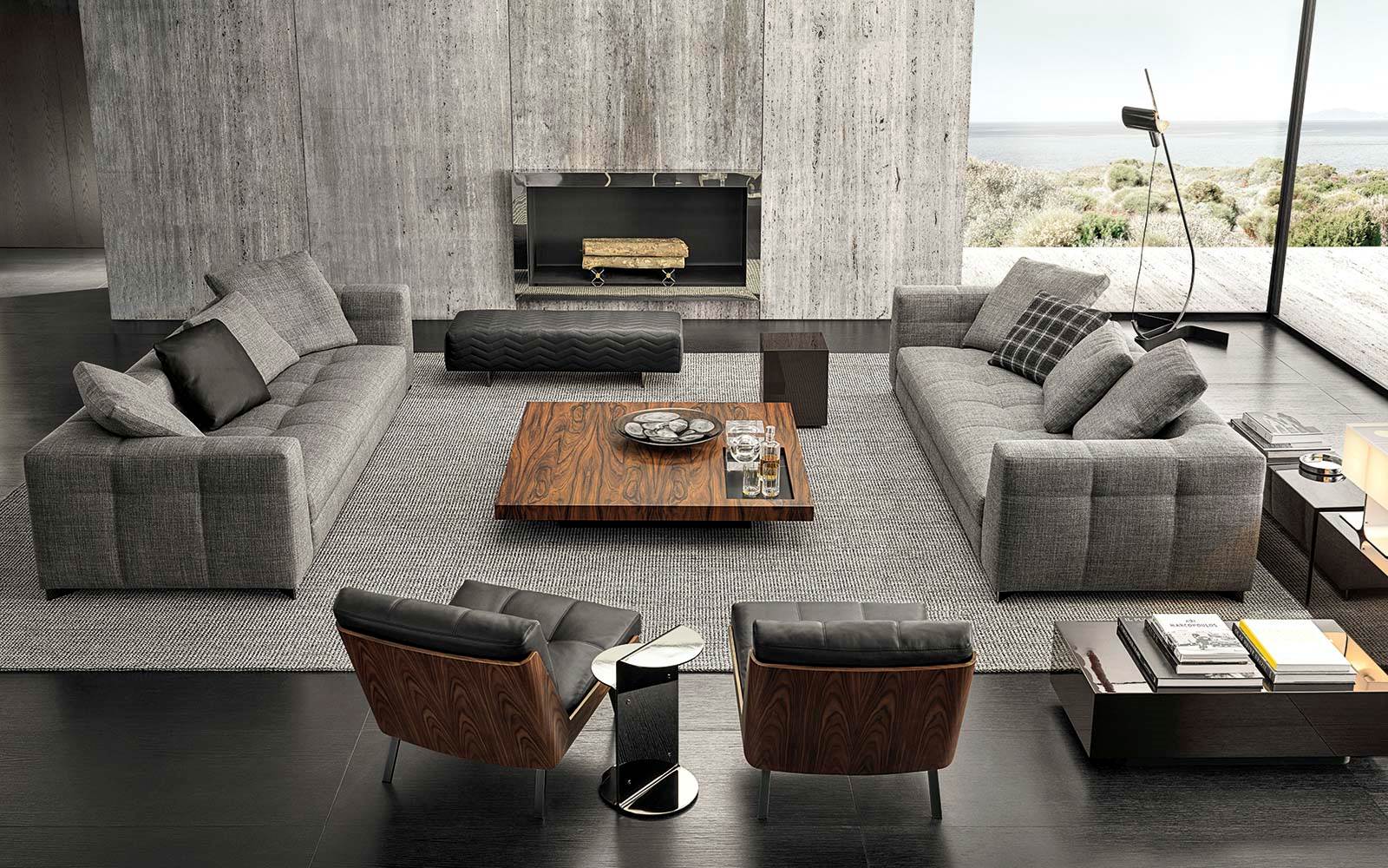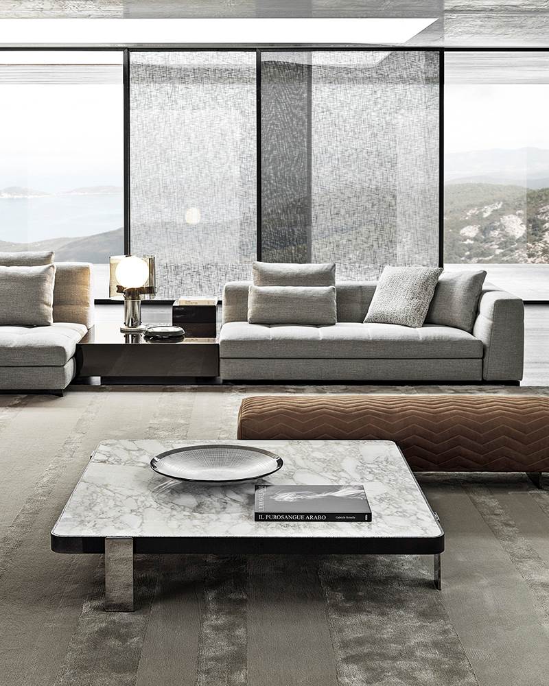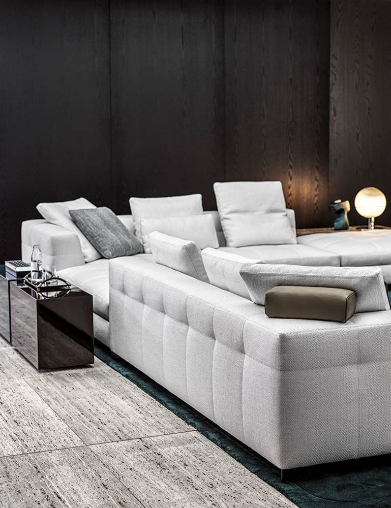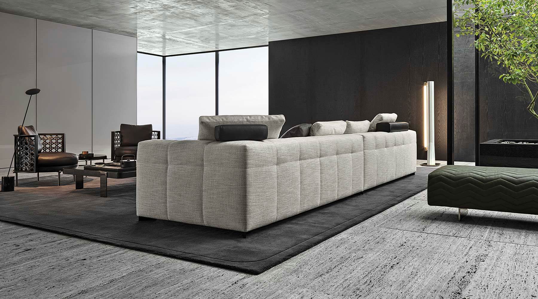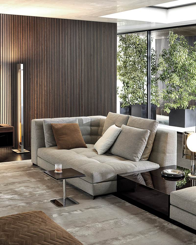 Blazerシーティングシステムは、精密な幾何学形の魅力あふれるデザインと、正確で緻密な職人技によるオートクチュールのアプローチが見事に融合しソファです。Minottiの高度な職人技が最も際立つ作品の一つです。