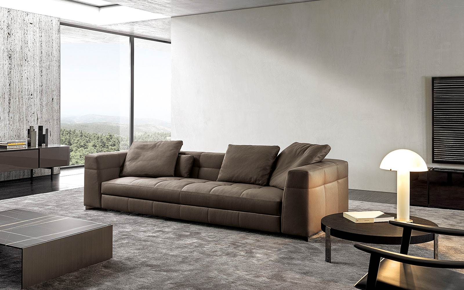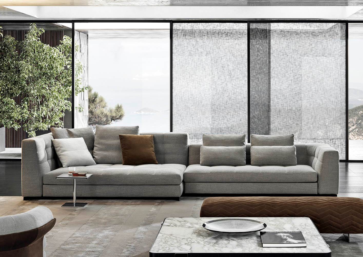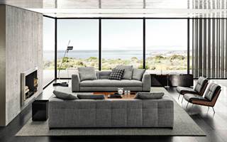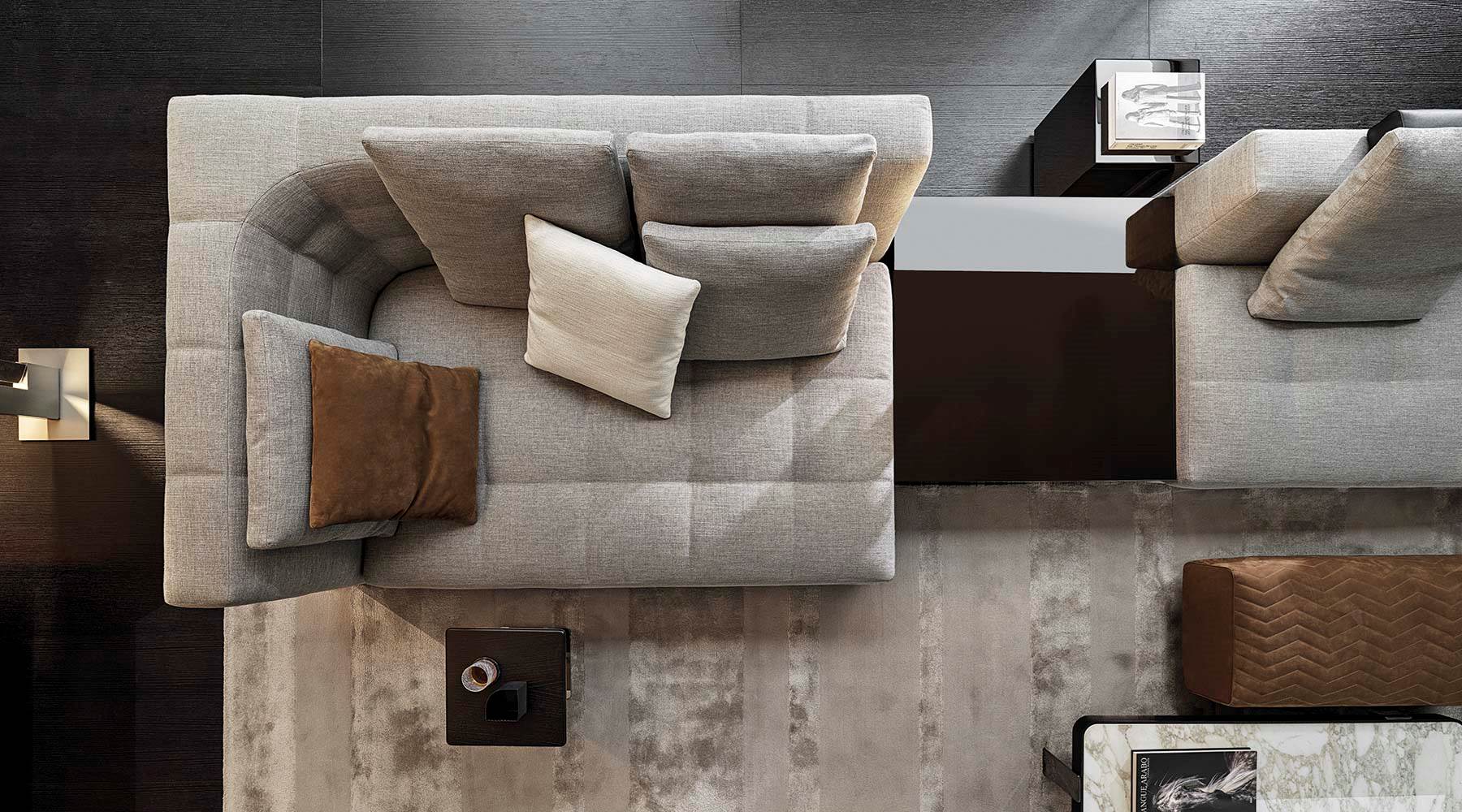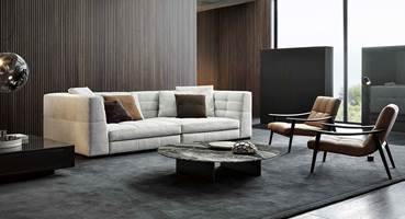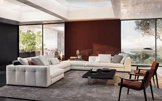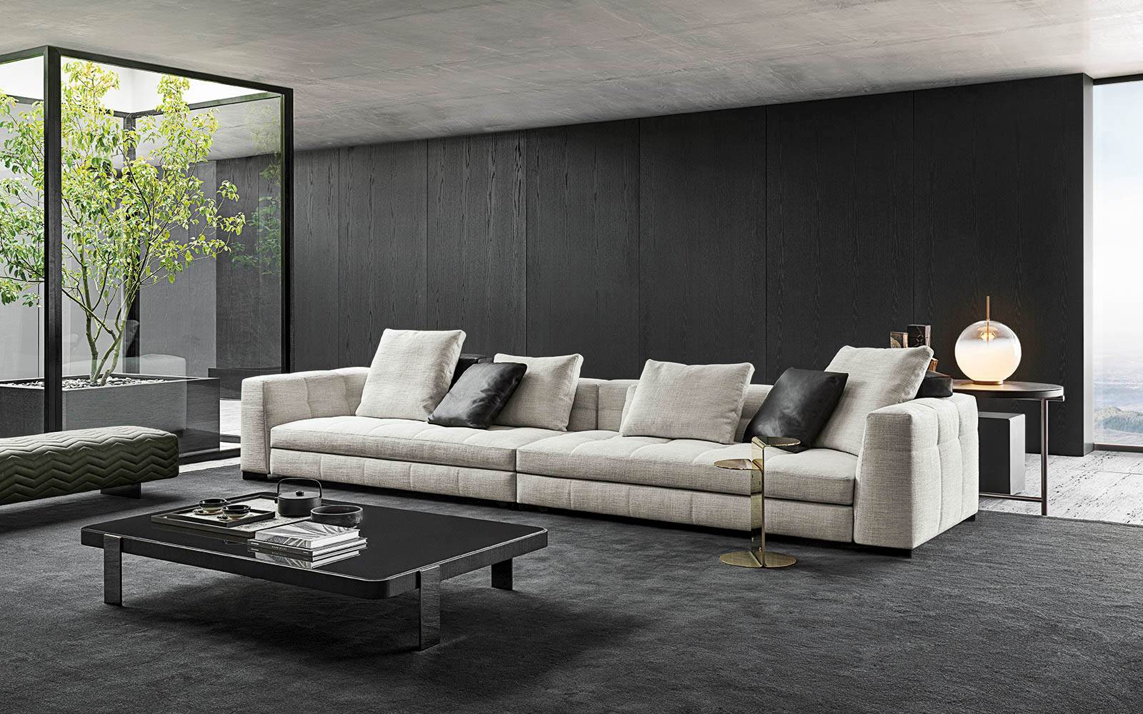 Blazerシーティングシステムは、精密な幾何学形の魅力あふれるデザインと、正確で緻密な職人技によるオートクチュールのアプローチが見事に融合しソファです。Minottiの高度な職人技が最も際立つ作品の一つです。
