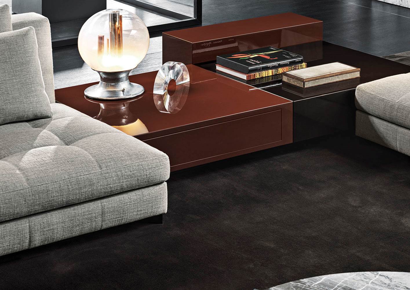 The material available on the Website may not be extracted or reused, reproduced in full or in part, distributed, published or transmitted, without the prior express written consent of MINOTTI. Any other activities that may be prejudicial to the legitimate interests of the authors and holders of rights concerning the original works and decorative models accessible thereon are forbidden.