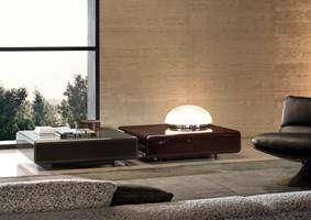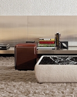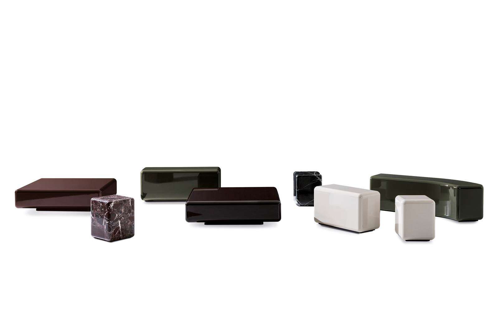 コンパクトで滑らかな形状のコーヒーテーブルシリーズです。ラッカー仕上げまたは大理石の、角が一切ないモノブロックボリュームが特徴的です。