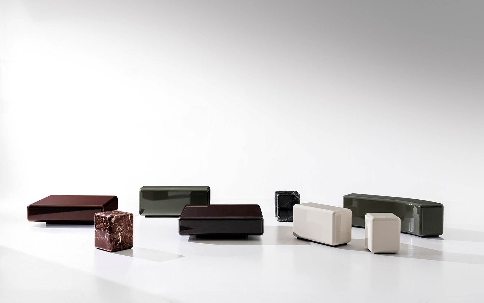 立方体から、異なるサイズや高さの平行六面体、空間に独特なタッチをプラスする曲線エレメントに至るまで、幅広いラインナップのFillコーヒーテーブルは、リビングスペースのさまざまなニーズに応えます。